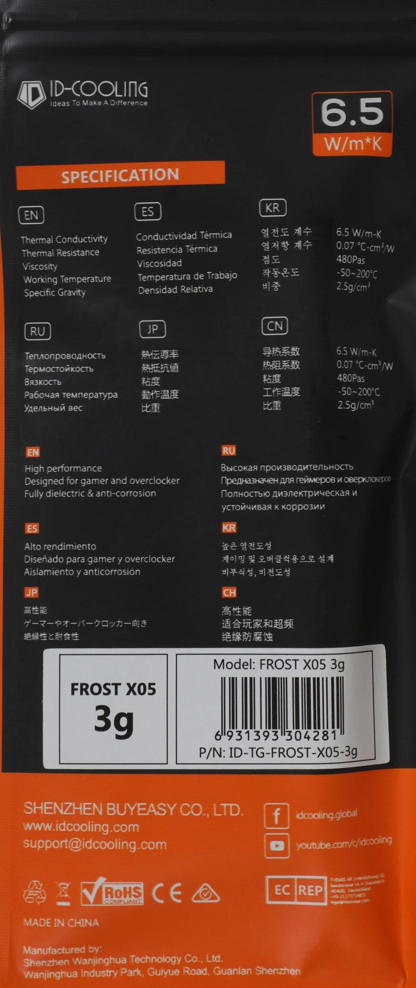 Термопаста ID-Cooling FROST X05 3g 6.5Вт/(м-К) шприц 3гр.