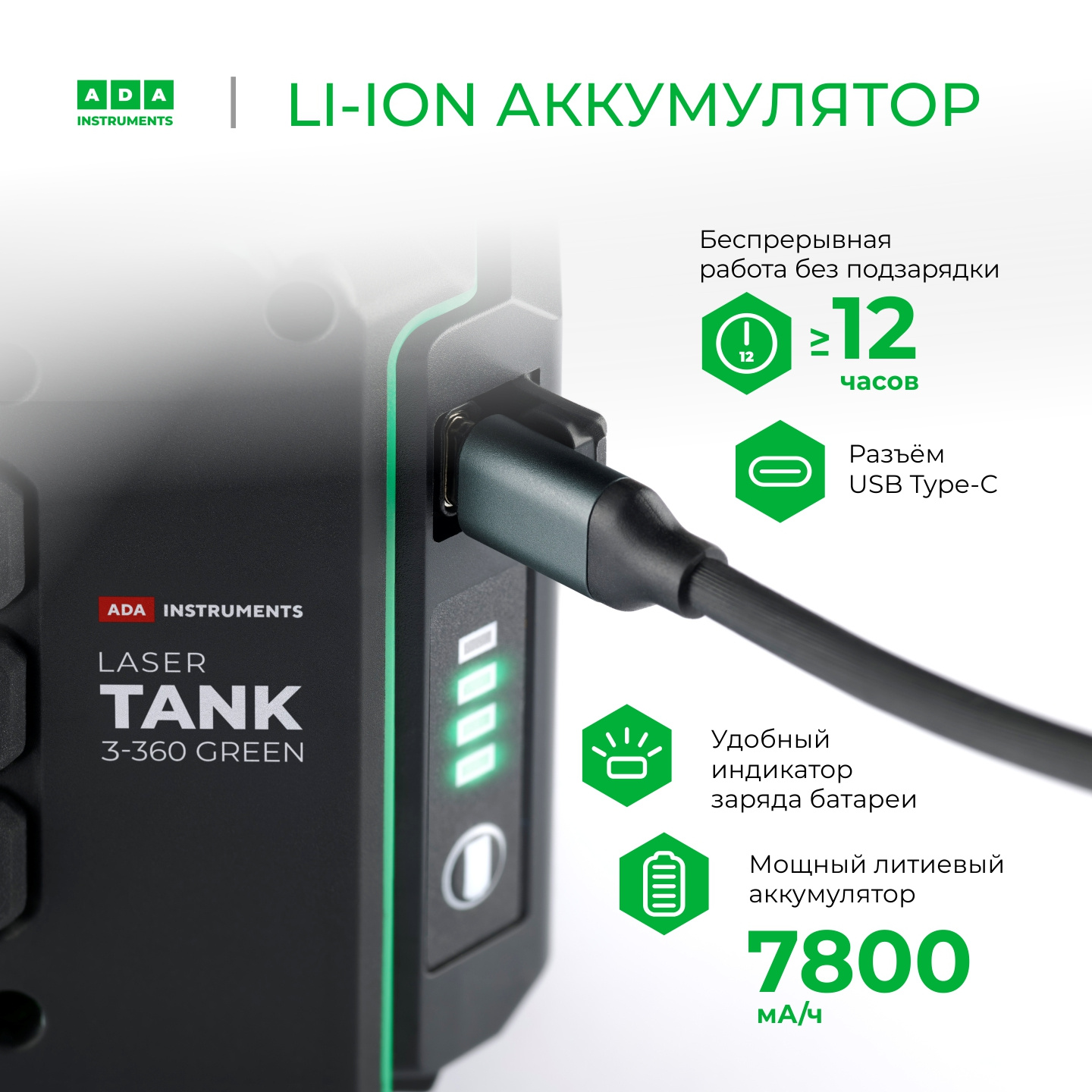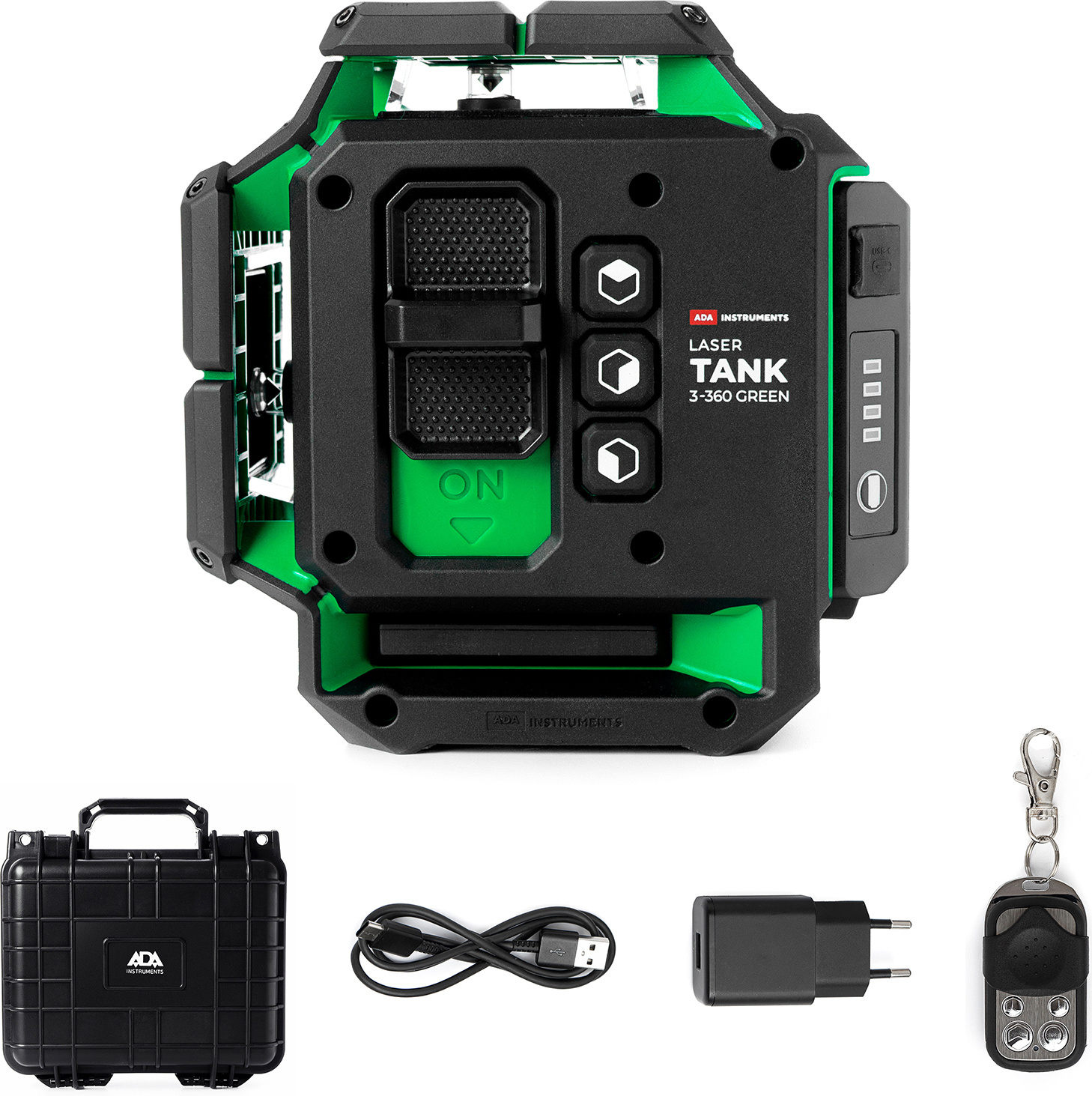 Уровень лазер. Ada LaserTANK 3-360 2кл.лаз. 515нм цв.луч. зеленый 3луч. (А00633)