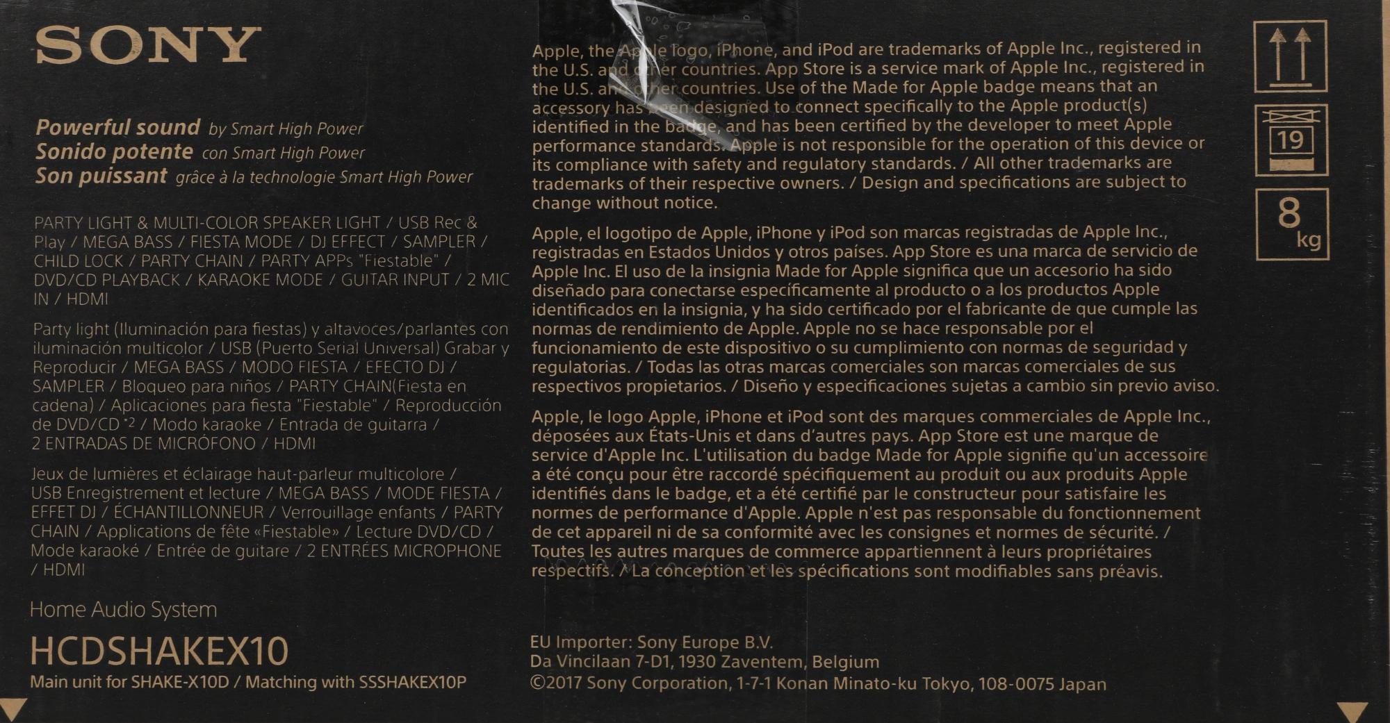 Минисистема Sony Shake-X10 черный 1200Вт CD CDRW DVD DVDRW FM USB BT