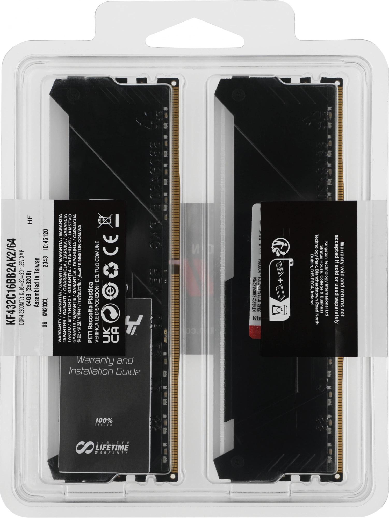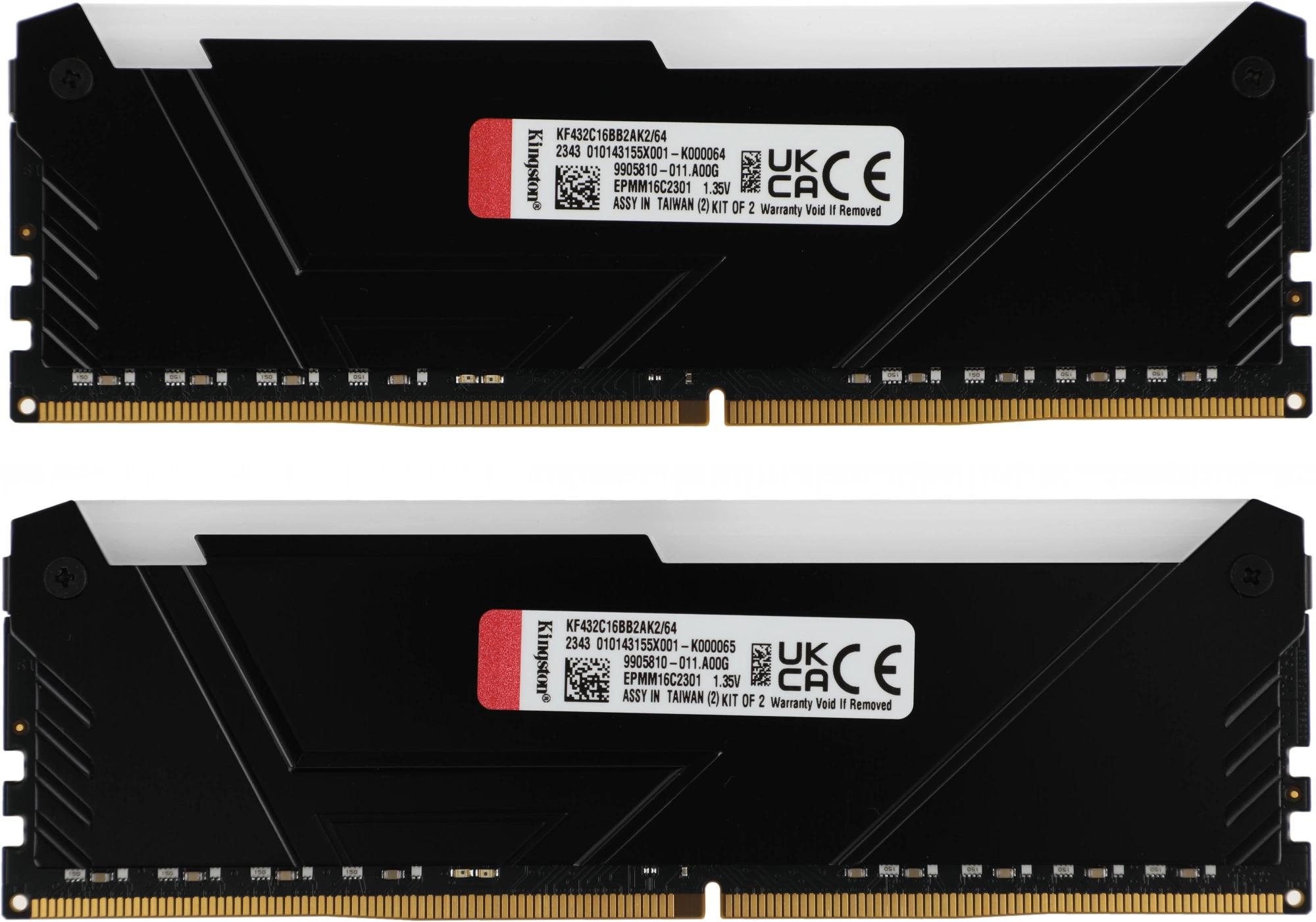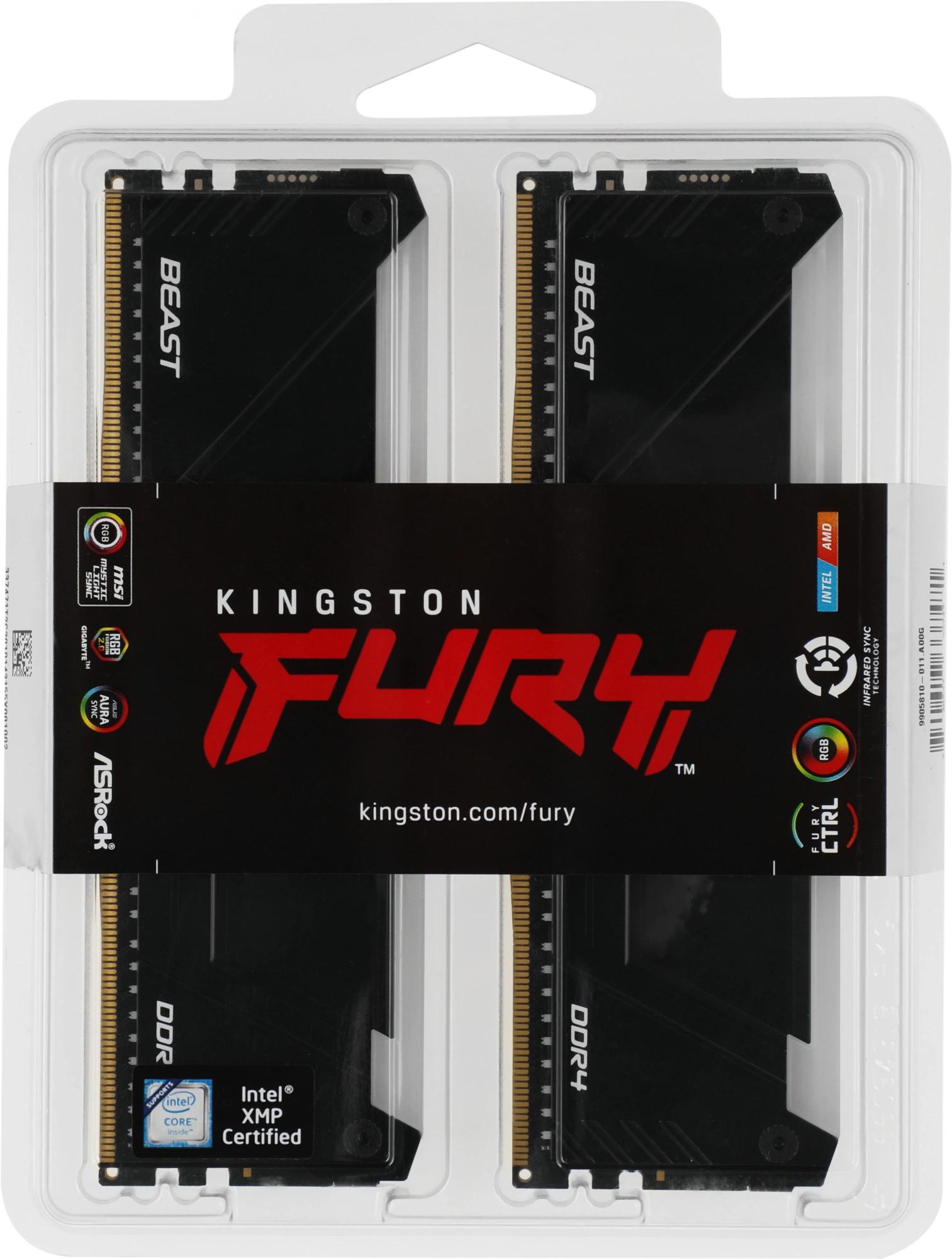 Память DDR4 2x32GB 3200MHz Kingston KF432C16BB2AK2/64 Fury Beast RGB RTL Gaming PC4-25600 CL16 DIMM 288-pin 1.35В dual rank с радиатором Ret