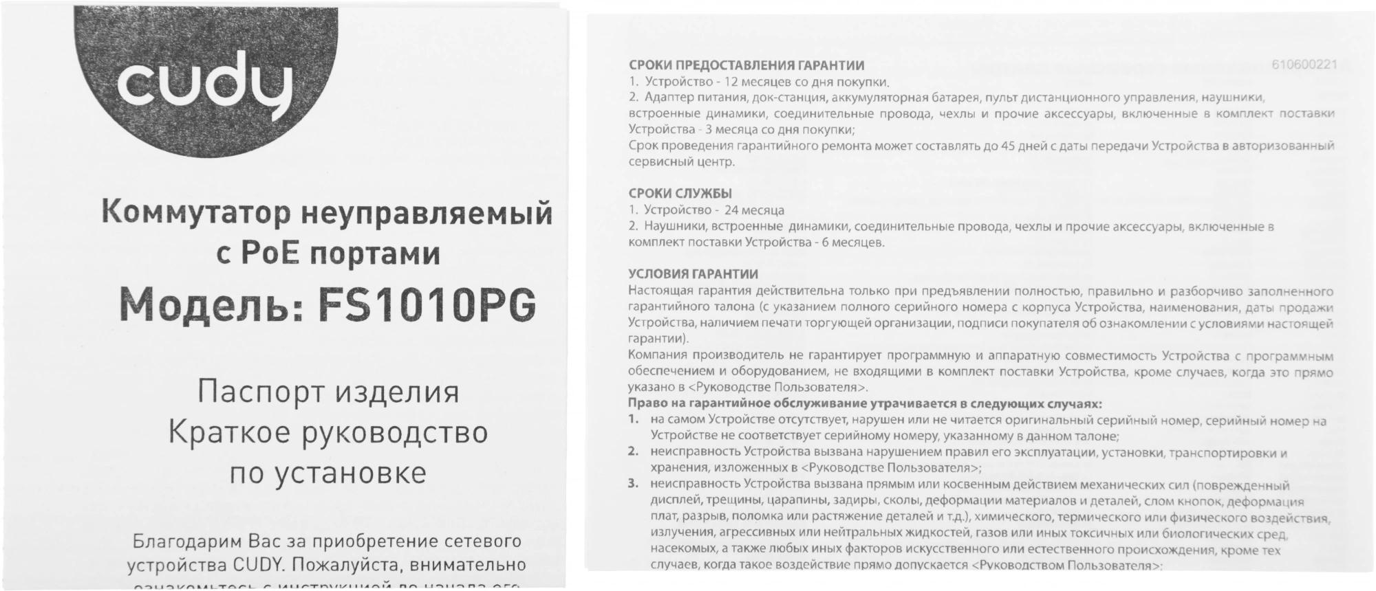 Коммутатор; кабель питания; руководство пользователя.