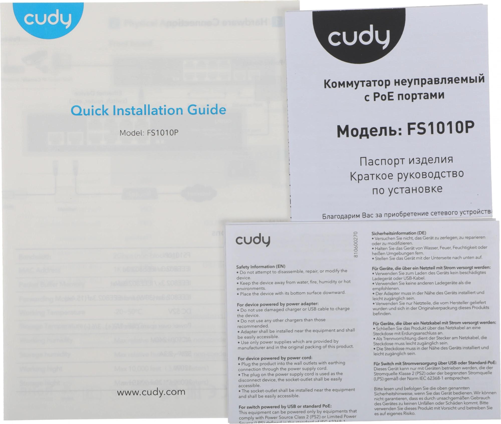 Коммутатор; кабель питания; руководство пользователя.