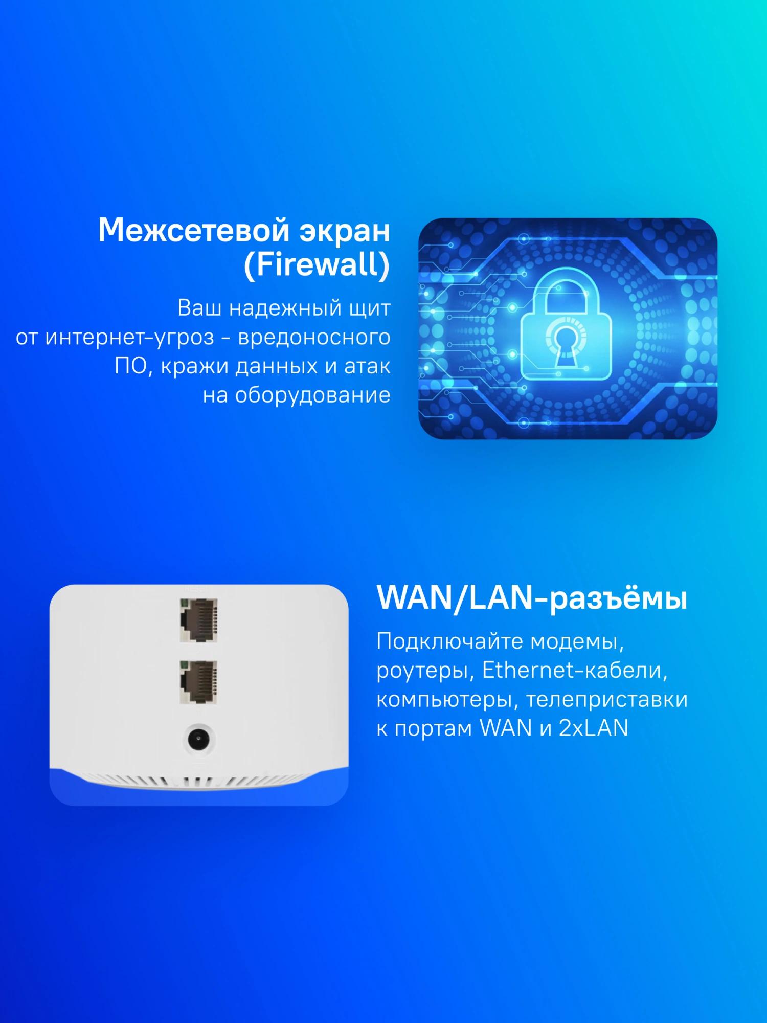 Площадь покрытия до 295 кв.м. (система 2-х роутеров).