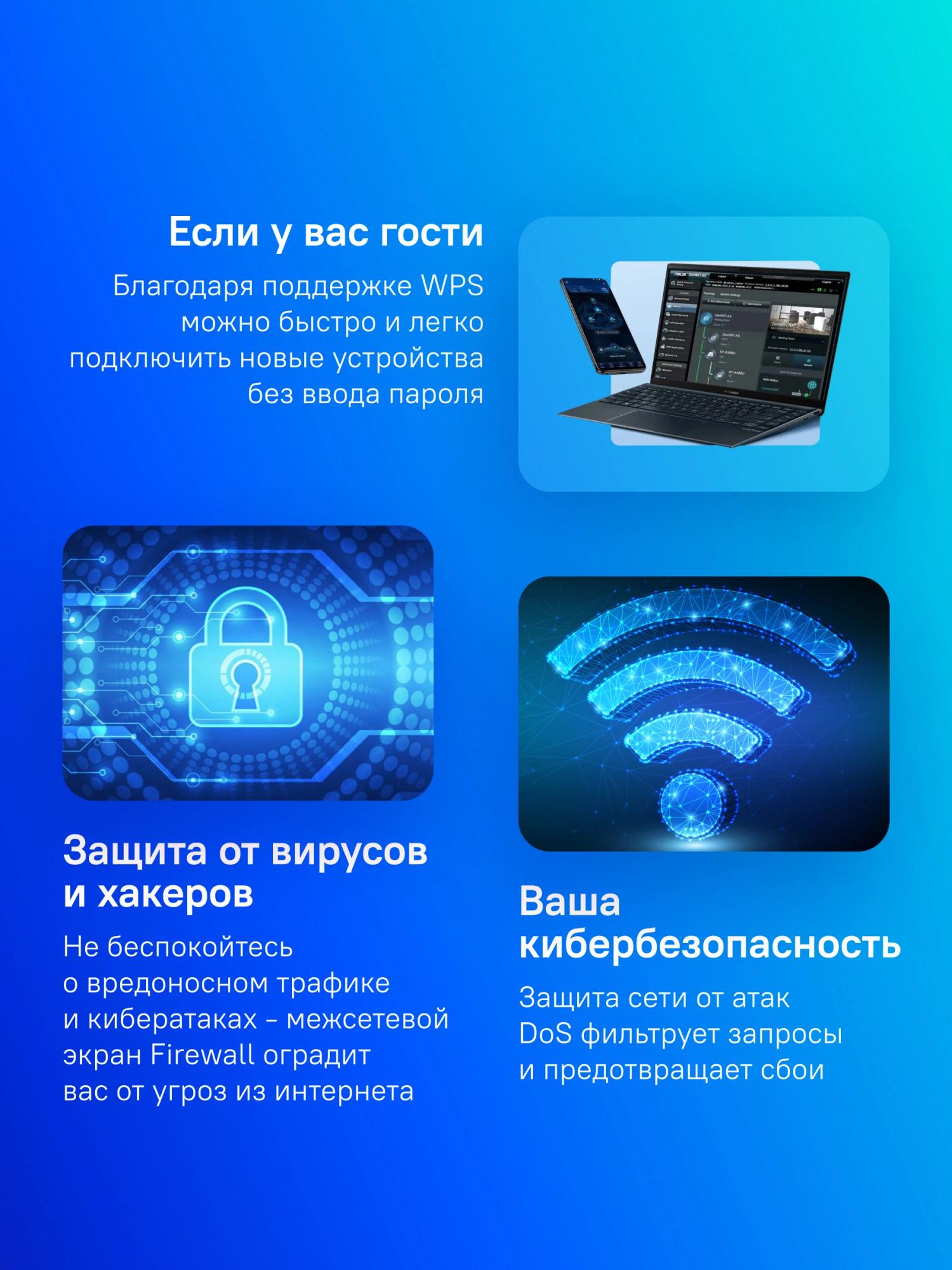 DHCP-сервер, Dynamic DNS (DDNS), MESH, UPnP, VPN, Wake-on-LAN, WPS, протокол IPv6