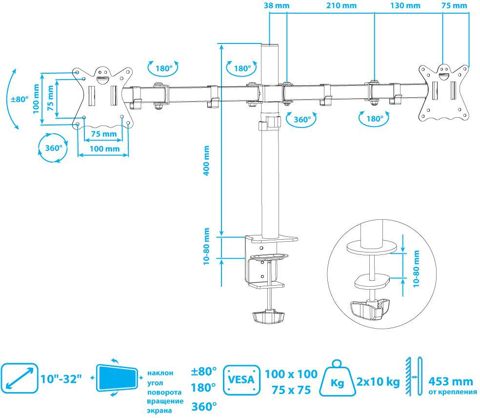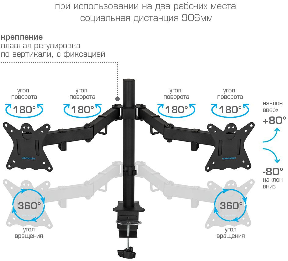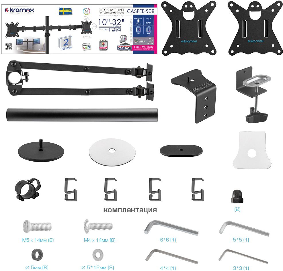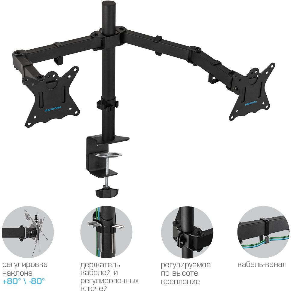 Кронштейн для мониторов Kromax CASPER-508 черный 10"-32" макс.10кг настольный поворот и наклон