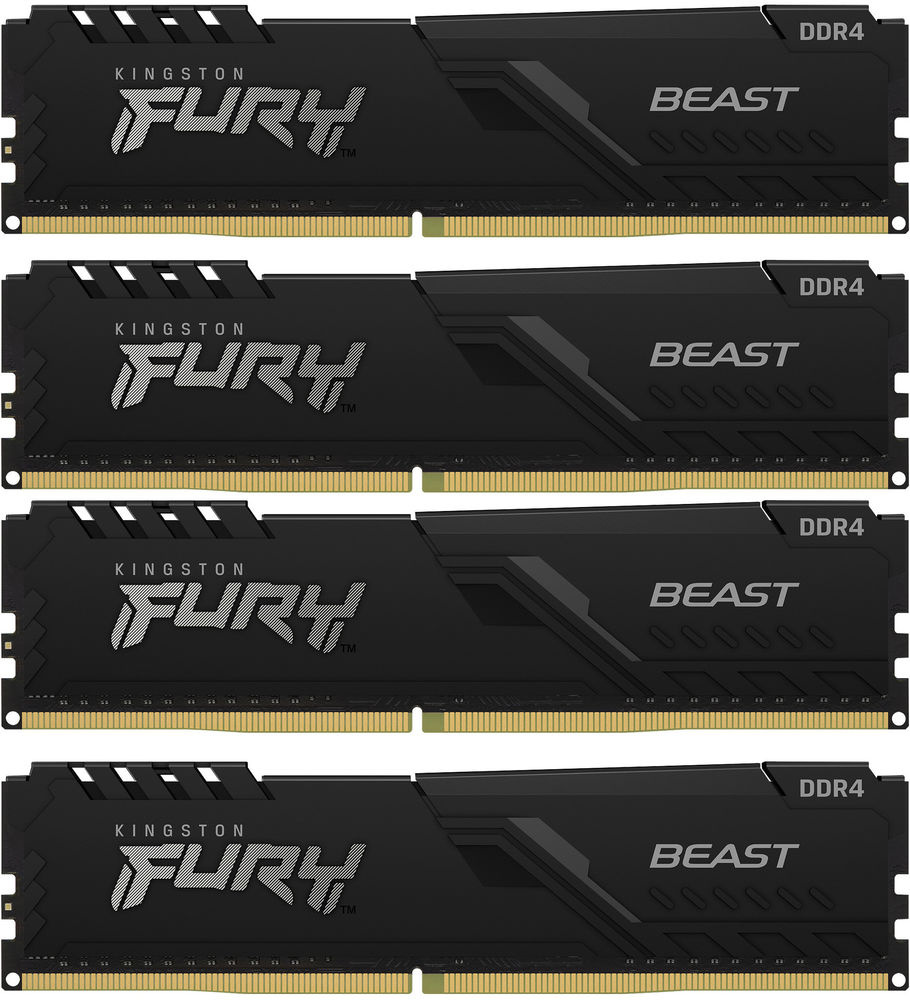 Память DDR4 4x32GB 3200MHz Kingston KF432C16BBK4/128 Fury Beast Black RTL Gaming PC4-25600 CL16 DIMM 288-pin 1.35В dual rank с радиатором Ret