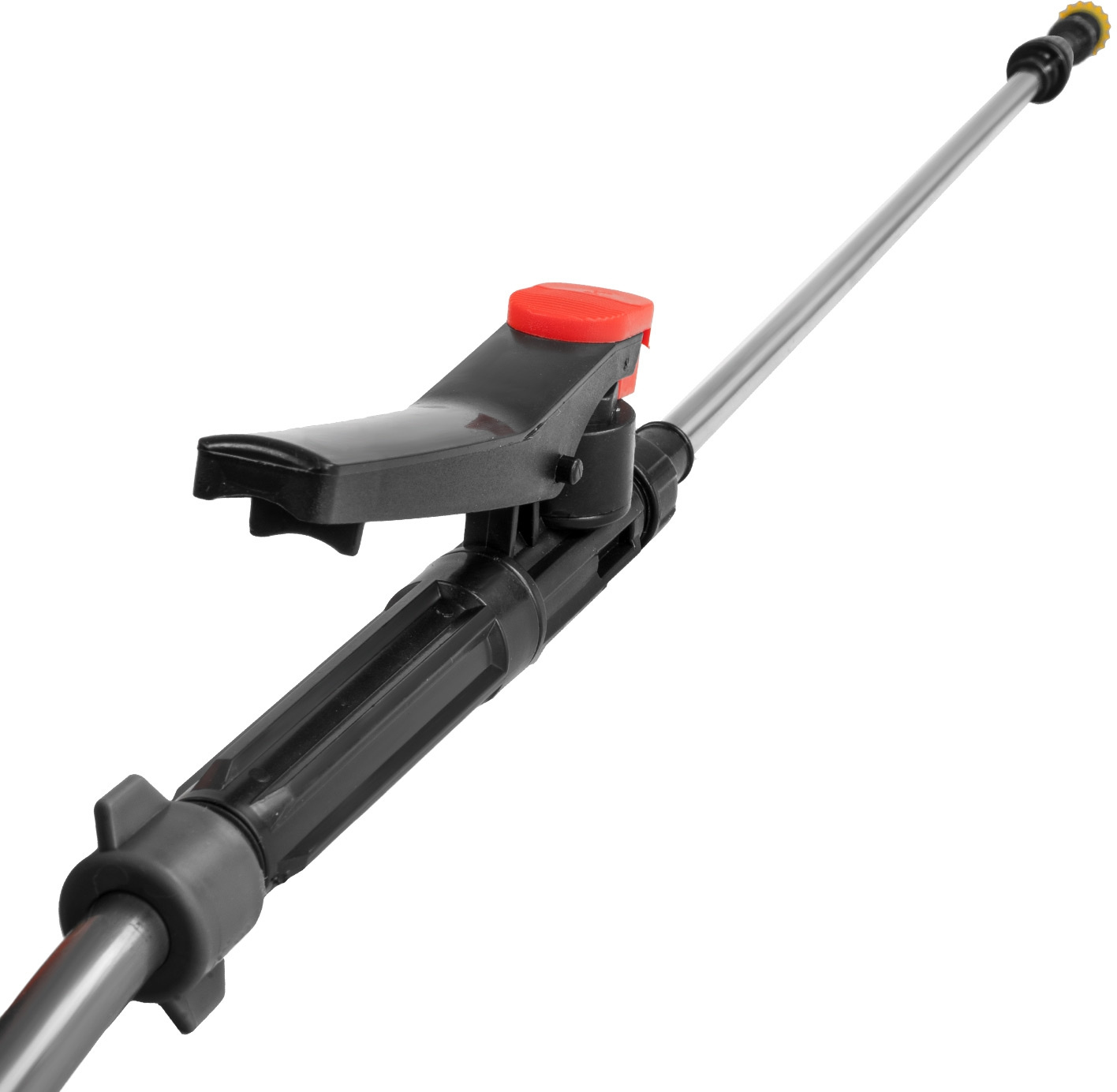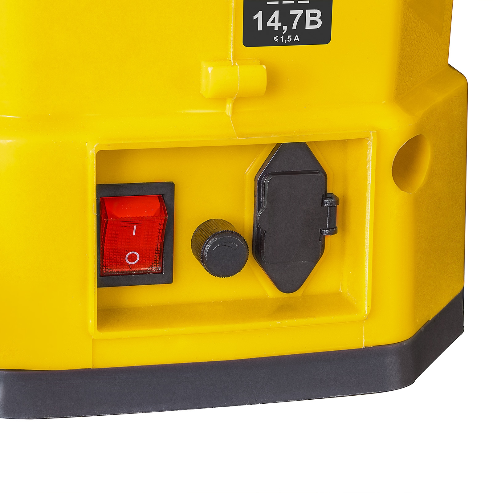 Встроенный энергоемкий аккумулятор не требует постоянного источника питания, позволяя использовать прибор в местах с отсутствием электричества. Мощный насос и регулятор скорости подачи жидкости расширяют применяемость опрыскивателя, а вместительный бак позволяет распылять значительный объем жидкости
