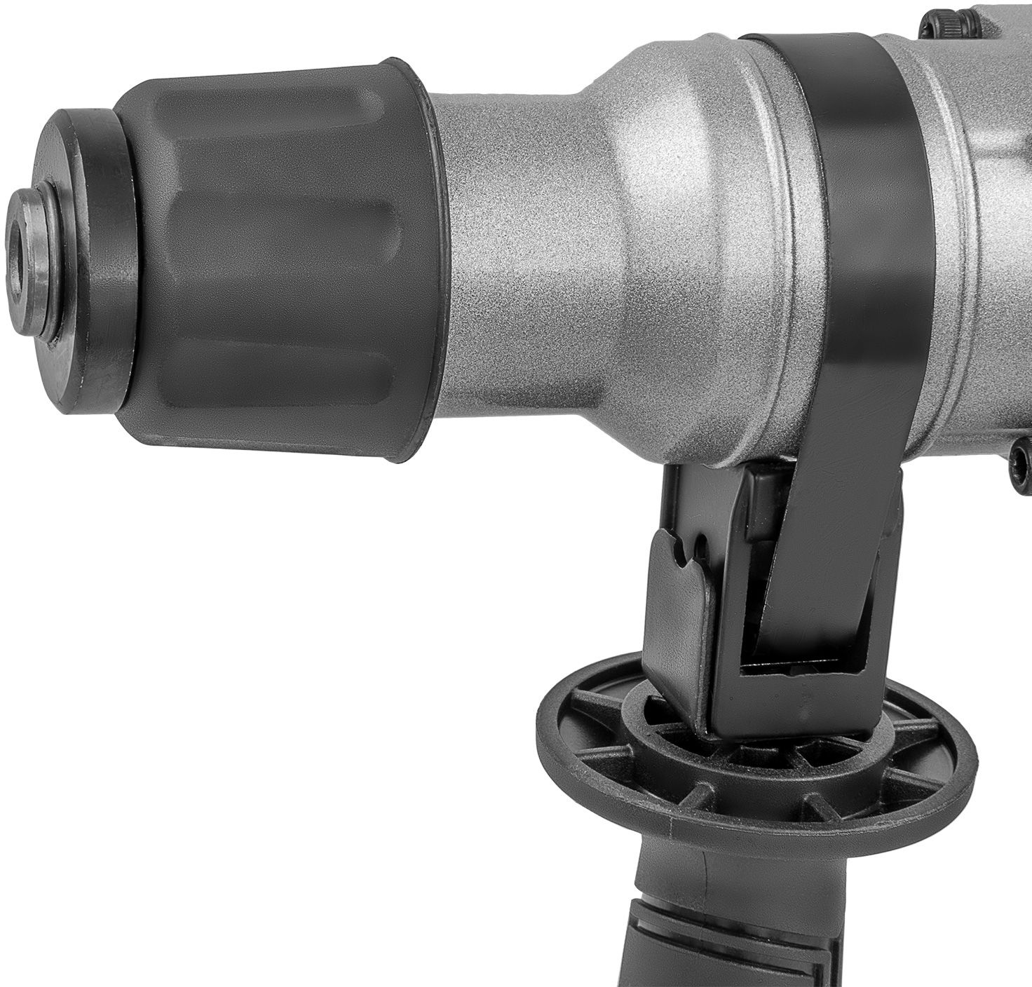 Перфоратор электрический, руководство по эксплуатации, дополнительная съемная рукоятка, глубиномер, долото, бур - 3 шт., пика, ключ отсека для смазки, емкость со смазкой, пыльник, пластиковый кейс.