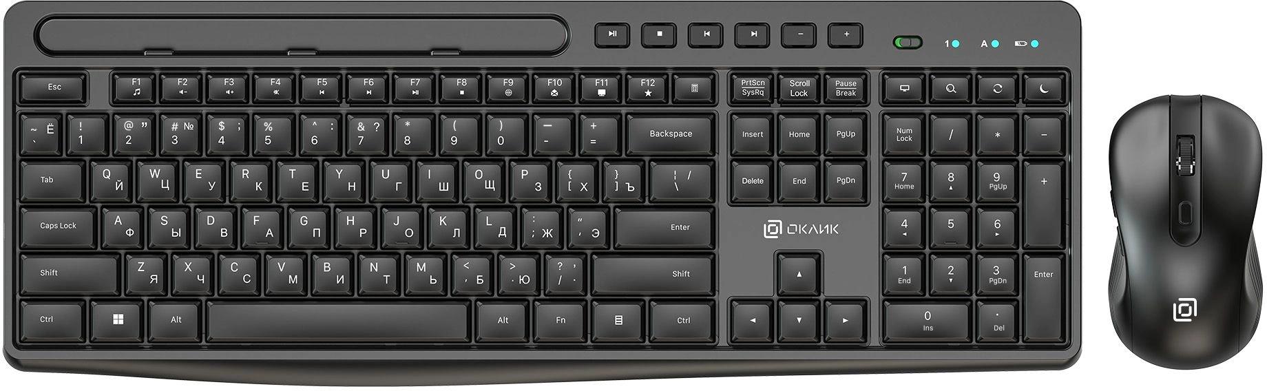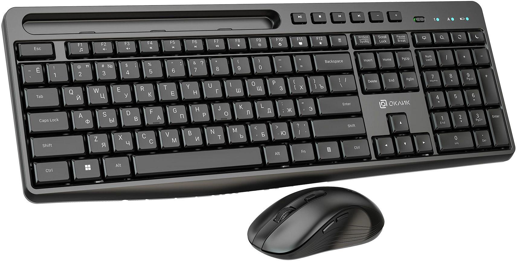 Бесшумный офисный комплект с дополнительными клавишами клавиатуры и беспроводным подключением.