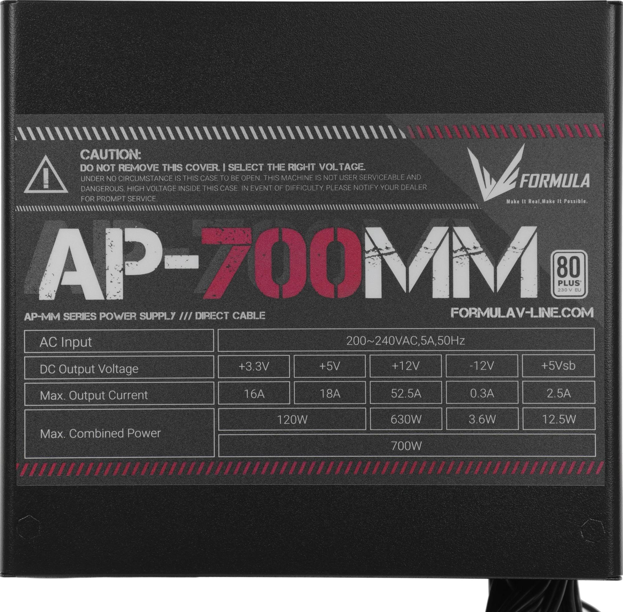 Блок питания Formula ATX 700W AP-700ММ 80 PLUS WHITE (20+4pin) APFC 120mm fan 6xSATA RTL