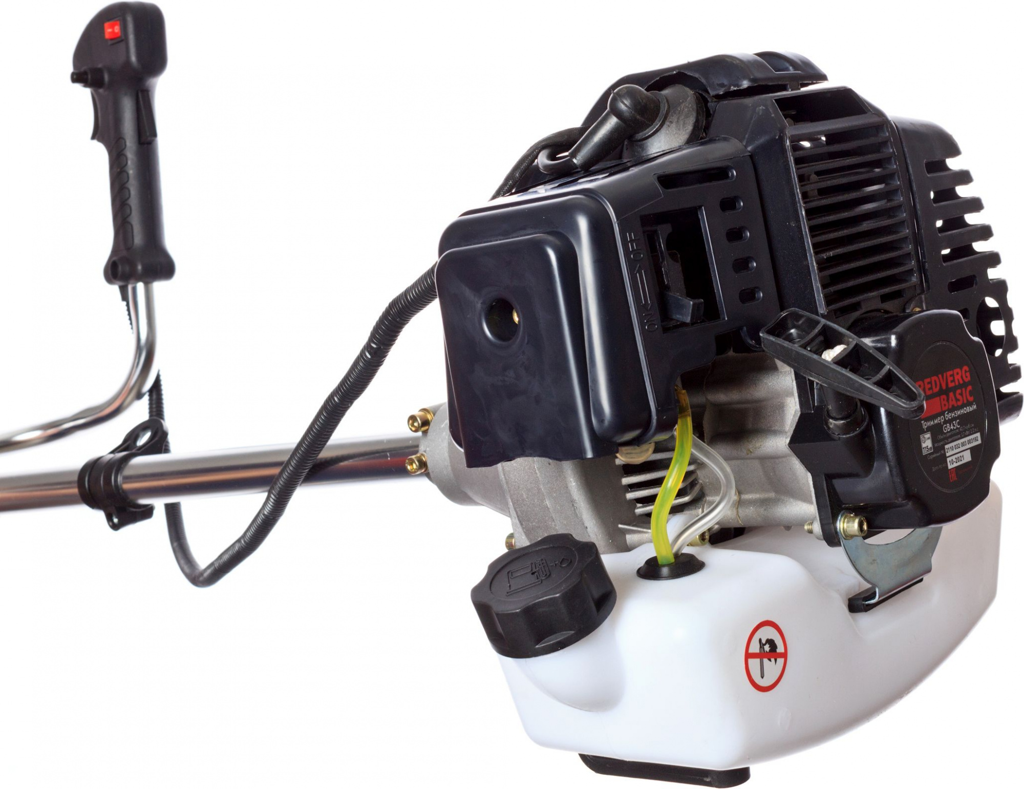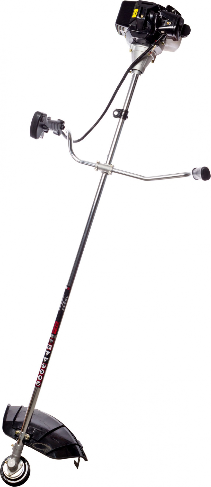 Защитный кожух; Наплечный ремень; Шпулька с леской; 3х лопастной диск; Ёмкость для приготовления топливной смеси; Крепёж; Нож к защитному щитку; Шестигранный ключ 2шт; Гаечный ключ; Свечной ключ; Отвёртка; Инструкция по эксплуатации