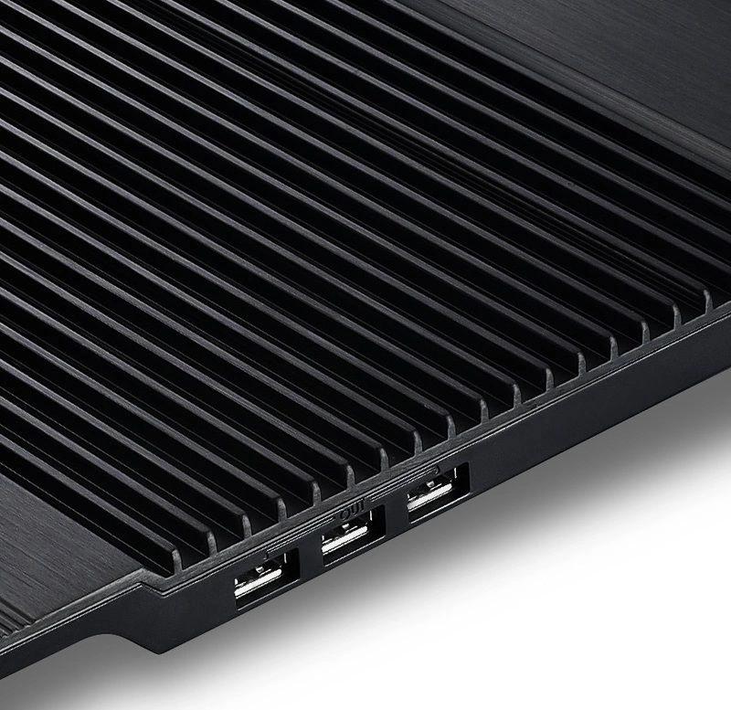 Превосходный дизайн воздухозаборного отверстия создает оптимальный для охлаждения ноутбука воздушный поток. Алюминиевая панель эффективно рассеивает тепло.