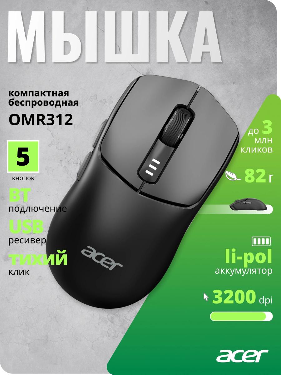 Мышь Acer OMR312 черный оптическая 3200dpi беспров. BT/Radio USB 5but (ZL.MCECC.035)