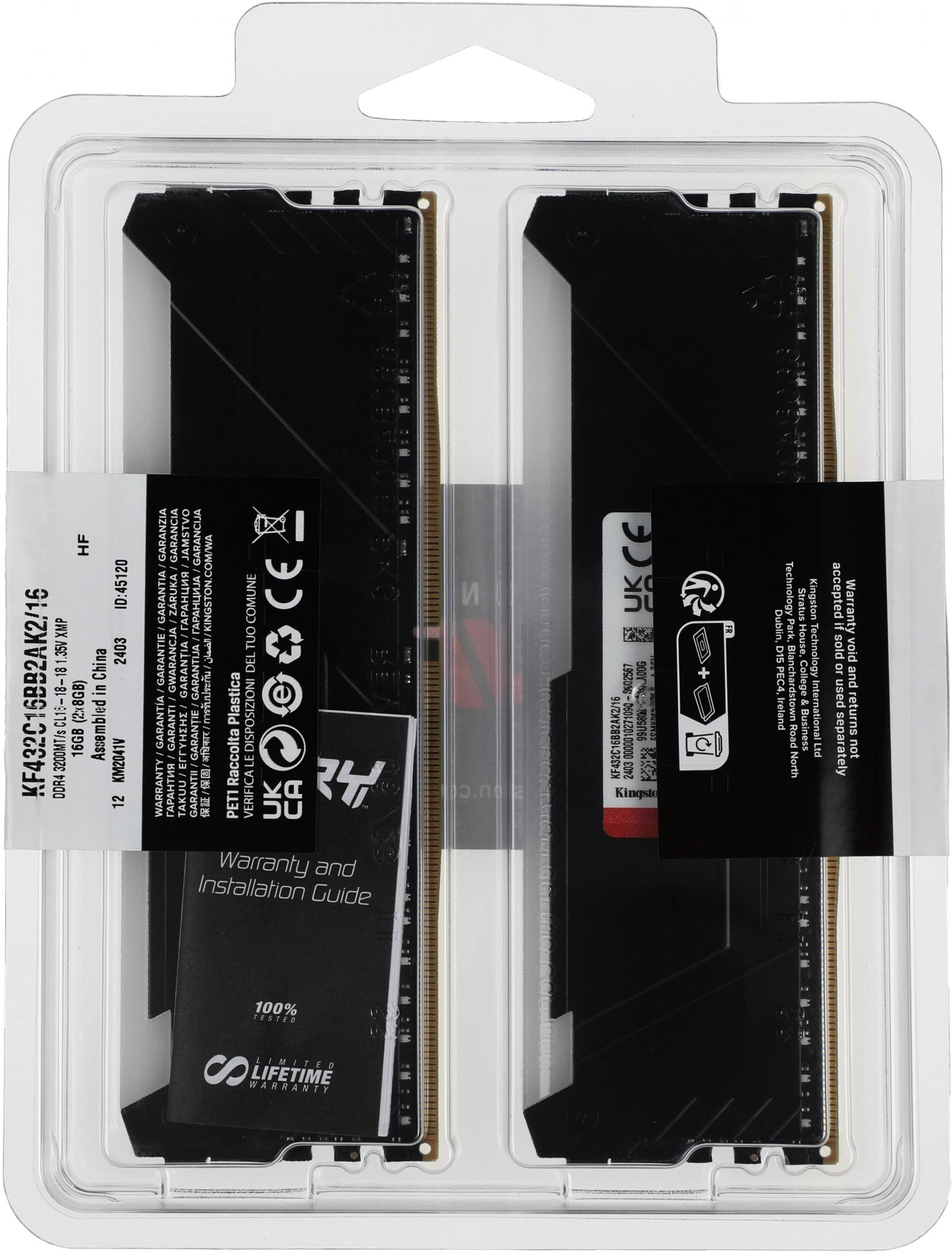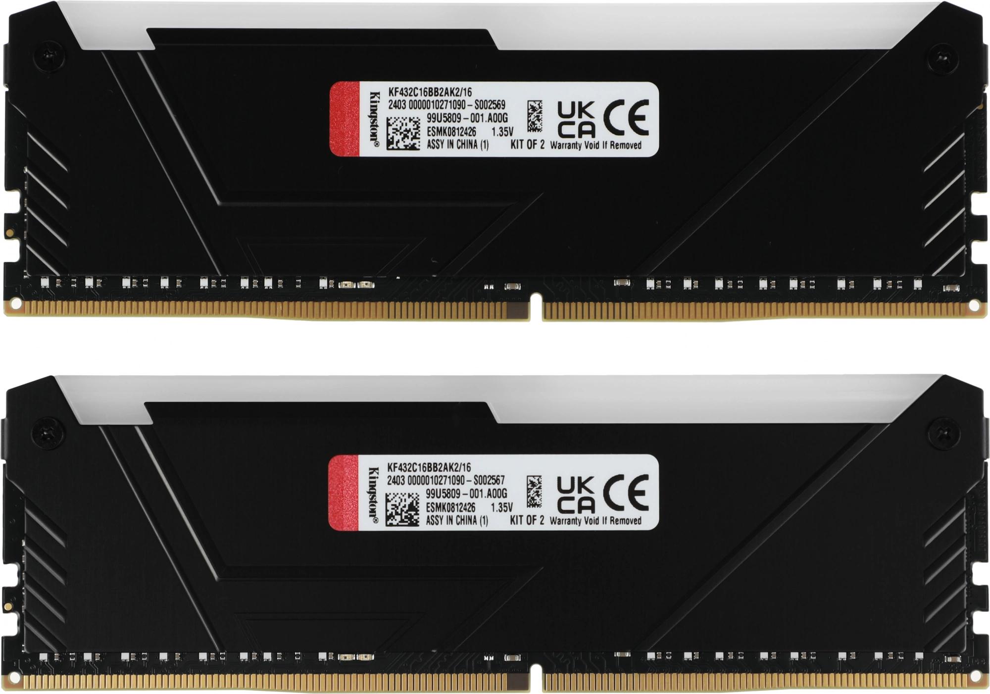 Память DDR4 2x8GB 3200MHz Kingston KF432C16BB2AK2/16 Fury Beast RGB RTL Gaming PC4-25600 CL16 DIMM 288-pin 1.35В kit dual rank с радиатором Ret