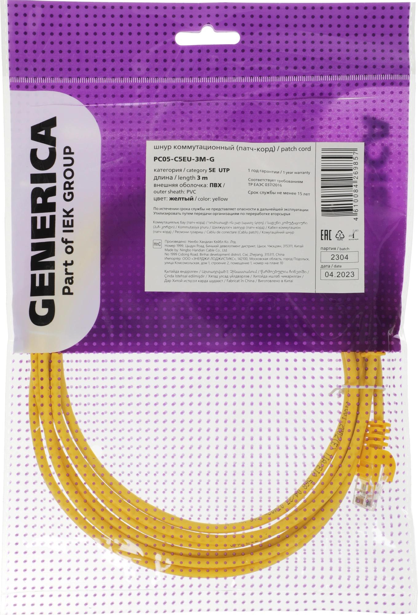 Патч-корд ITK Generica PC05-C5EU-3M-G U/UTP RJ-45 вил.-вилка RJ-45 кат.5E 3м желтый ПВХ
