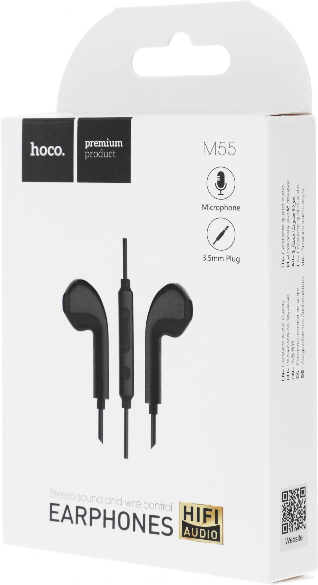 Гарнитура вкладыши Hoco M55 1.2м черный проводные в ушной раковине