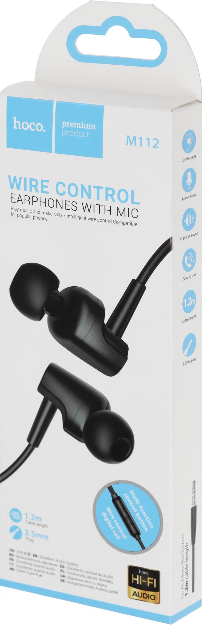Гарнитура внутриканальные Hoco M112 1.2м черный проводные в ушной раковине