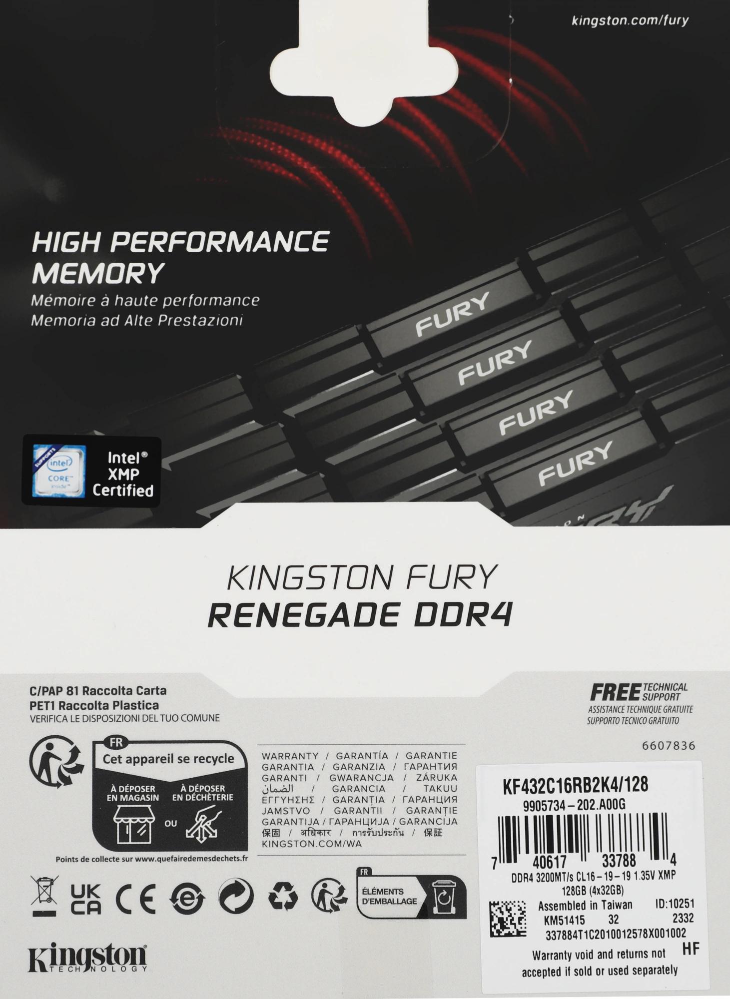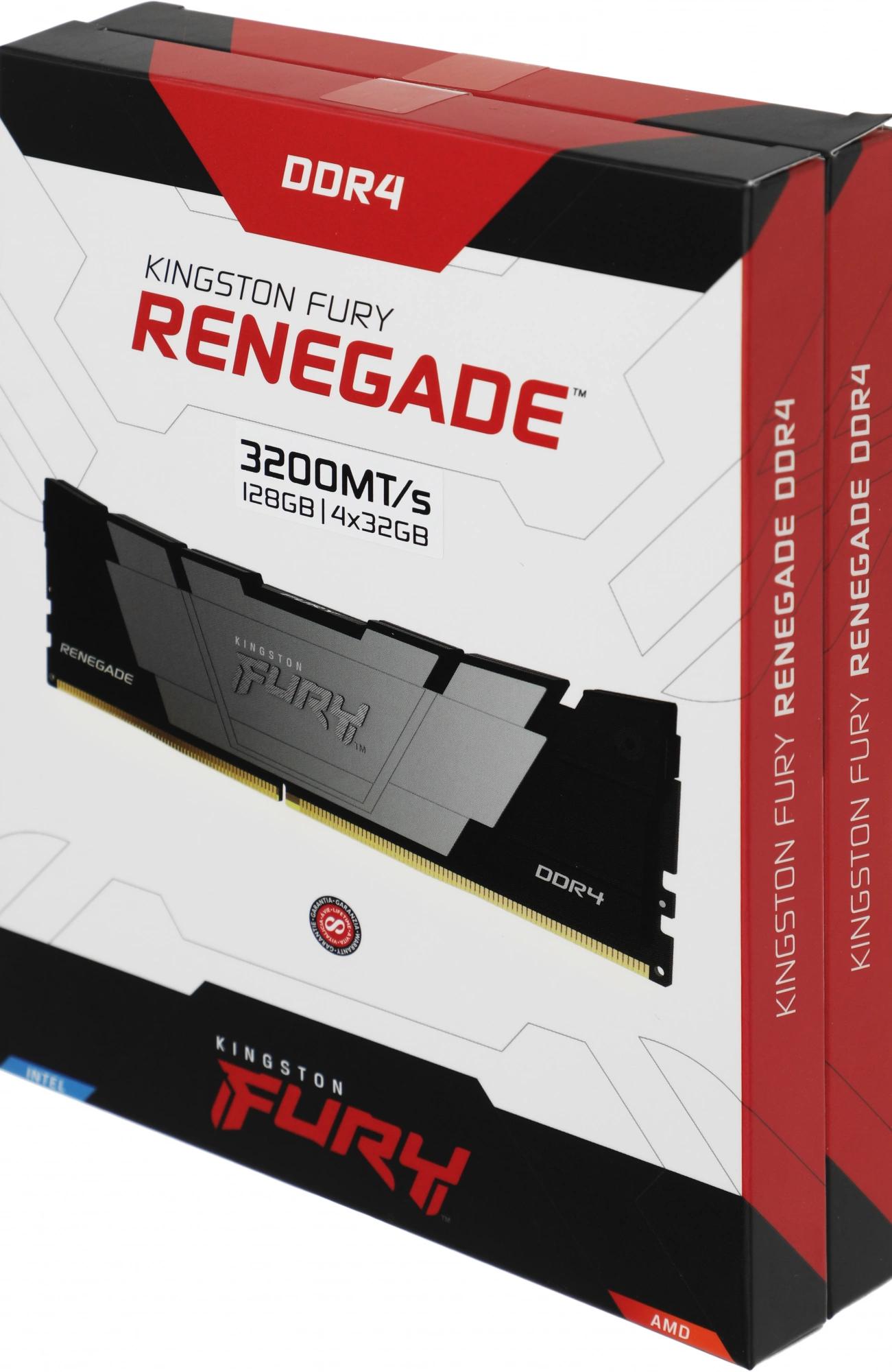 Память DDR4 4x32GB 3200MHz Kingston KF432C16RB2K4/128 Fury Renegade Black RTL Gaming PC4-25600 CL16 DIMM 288-pin 1.35В kit dual rank с радиатором Ret