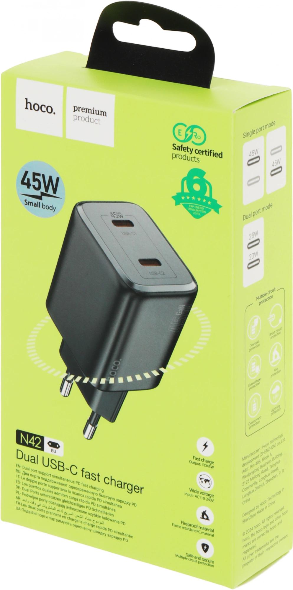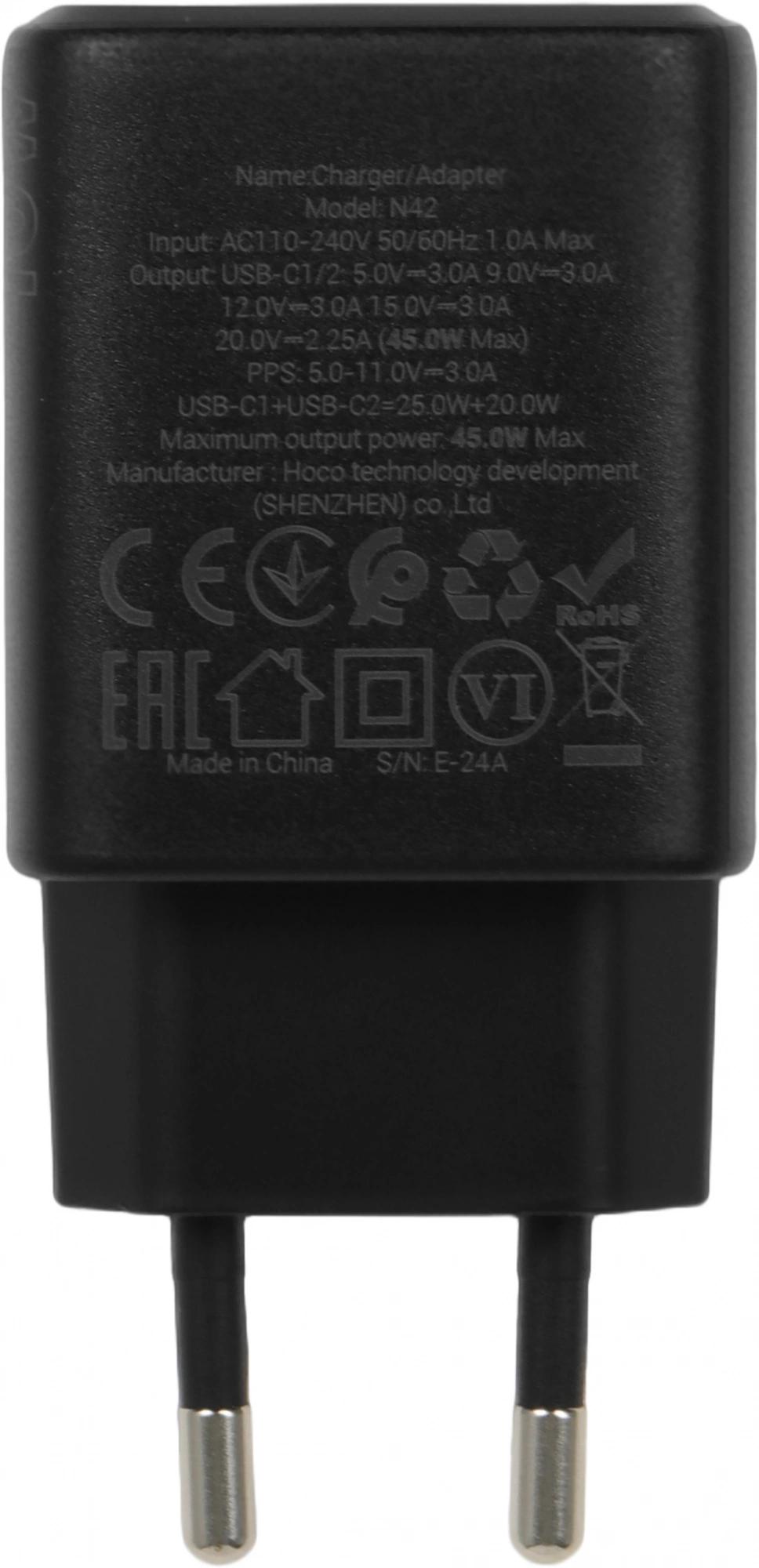 Зарядное устройство с двумя Type-C портами.Поддержка протоколов быстрой зарядки для PD45W / PPS / QC3.0 / FCP / AFC.