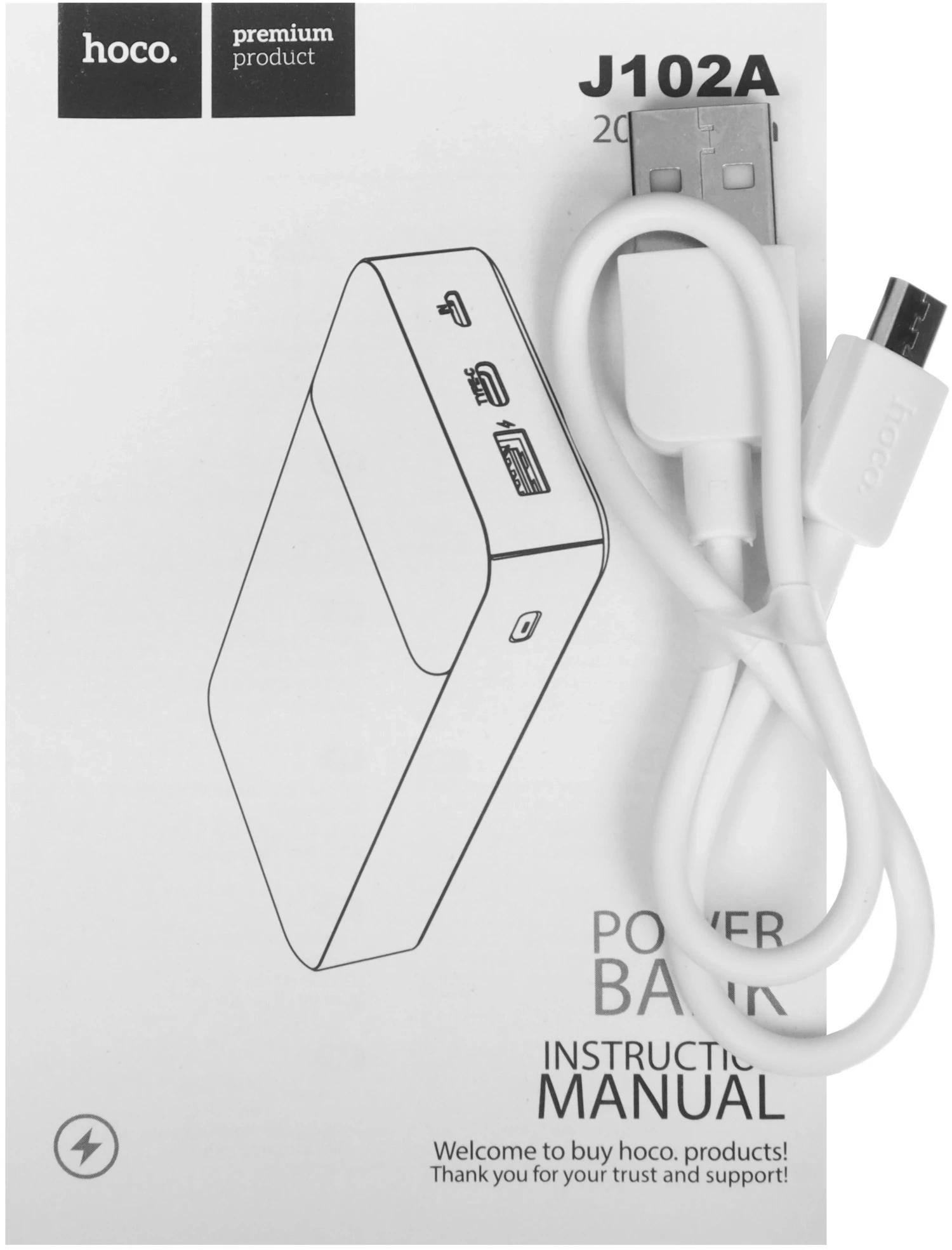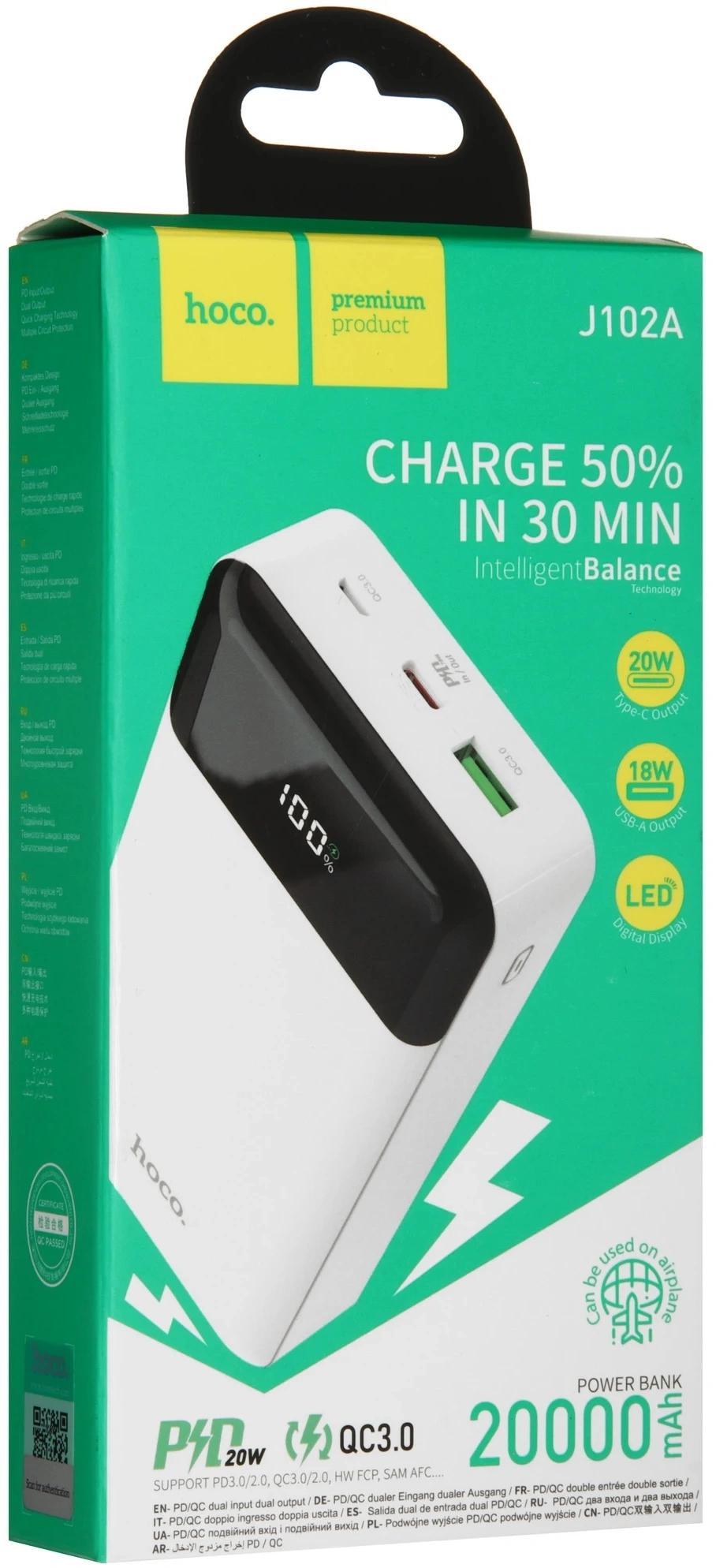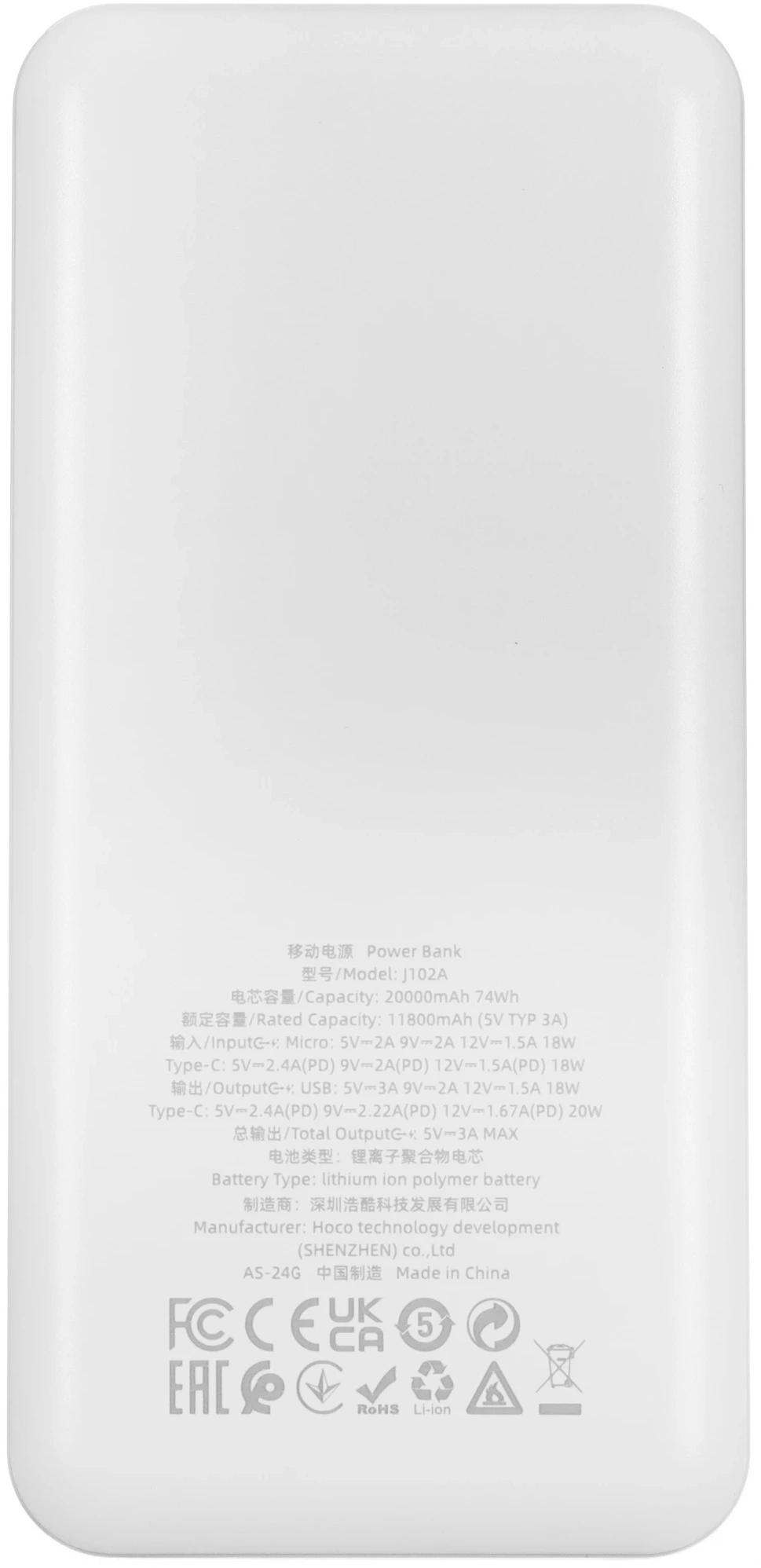 Внешний аккумулятор HOCO J102A Cool Figure 20000mAh, 1xUSB, 1xUSB-C, 3А, QC3.0, PD20W, LED, Li-Pol (белый)