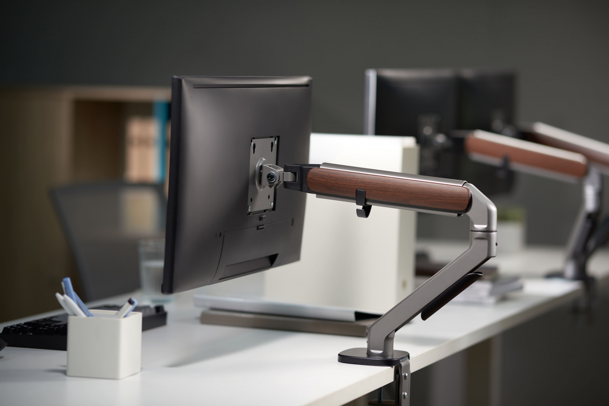 Настольный кронштейн для монитора с системой газ-лифт. Пружинный механизм позволяет легко перемещаться вверх и вниз.