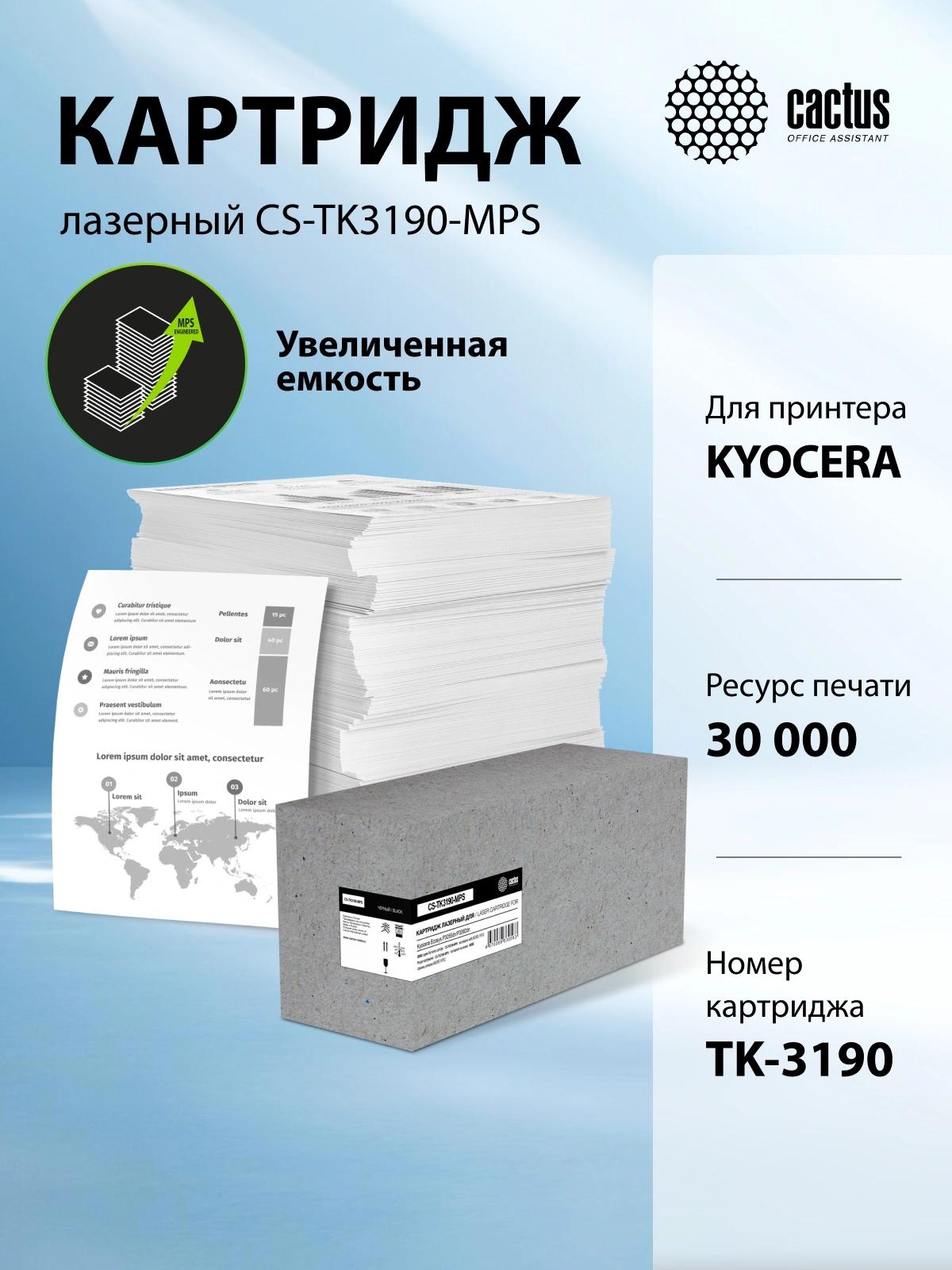Картридж лазерный Cactus CS-TK3190-MPS черный (30000стр.) для Kyocera Ecosys P3055dn/P3060dn
