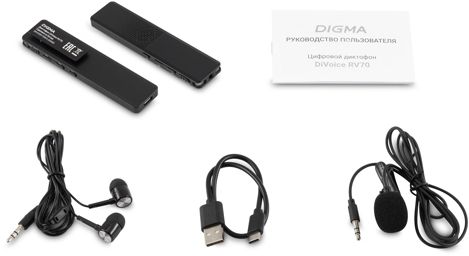 Диктофон Цифровой Digma DiVoice RV70 32Gb черный