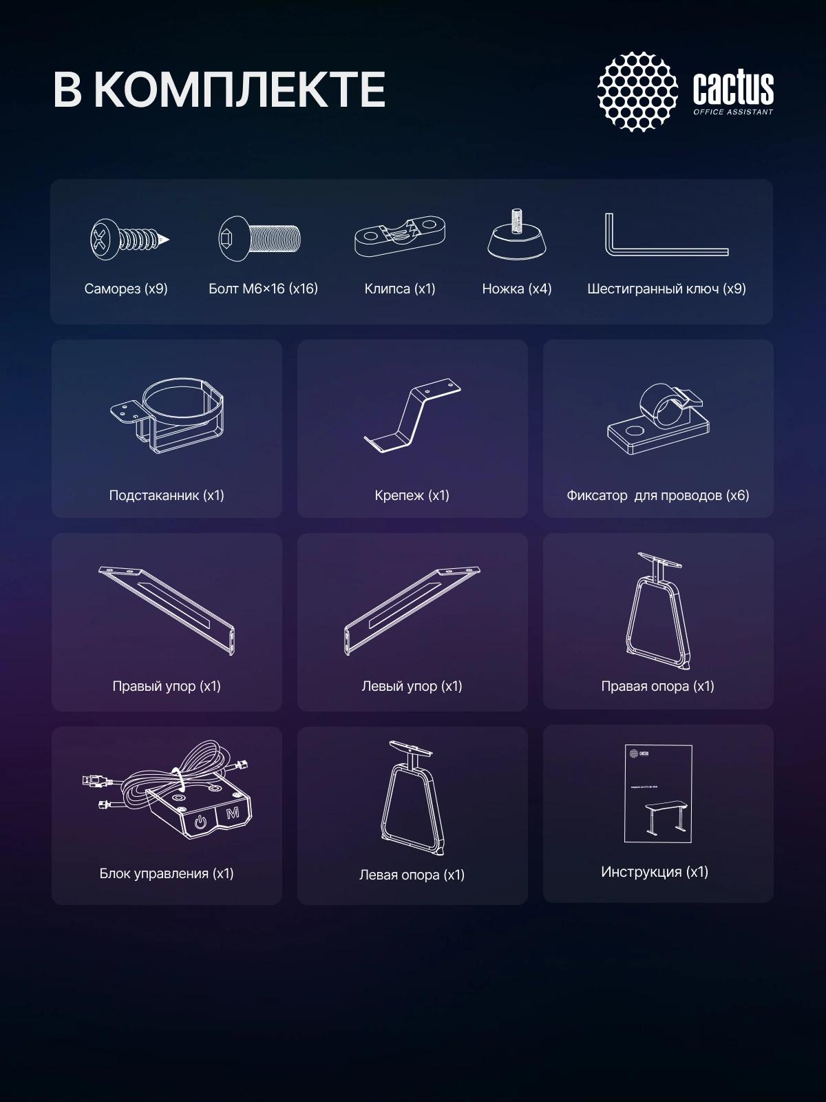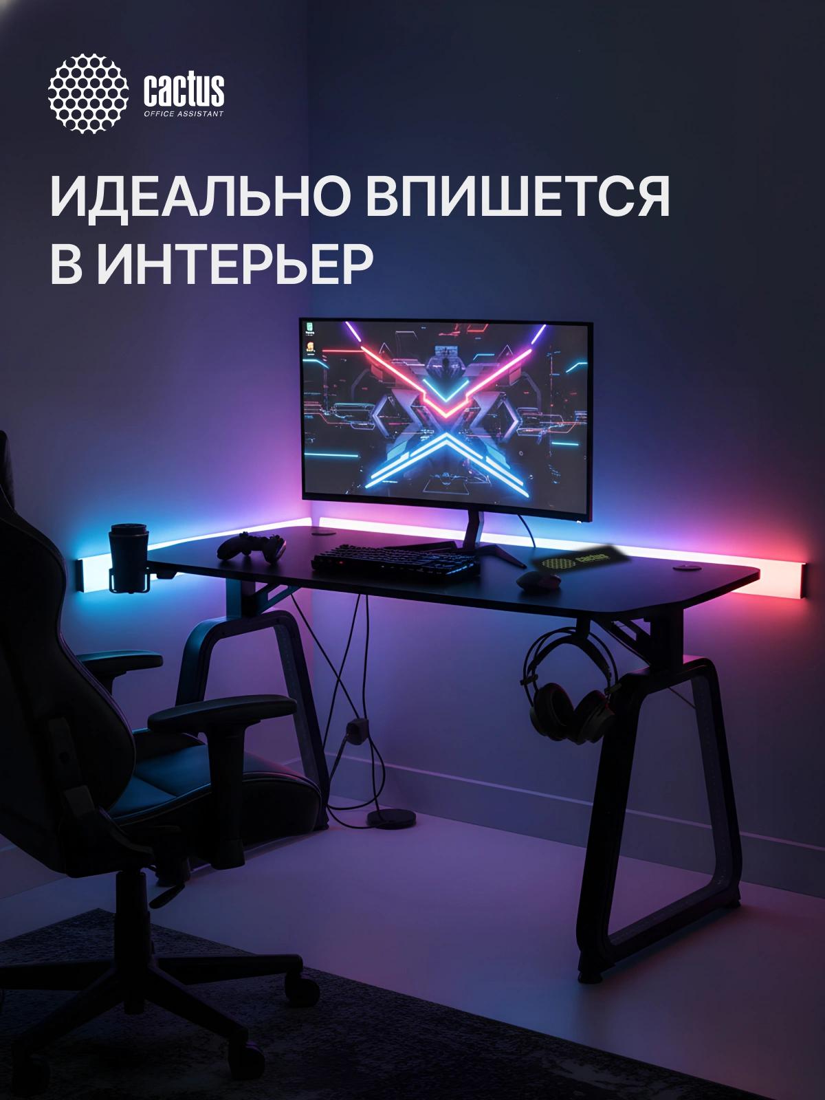 Стол игровой Cactus CS-GMD-BK-RGB столешница МДФ черный каркас черный 136x60x75см