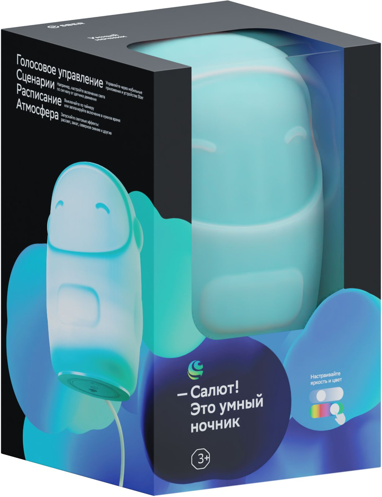 Умный ночник Sber в форме космонавта красиво светится в темноте и стильно выглядит. Ваши дети будут просыпаться в удовольствие. Регулируйте яркость, температуру цвета, выбирайте любой из 16 млн цветов. Удалённо включайте ночник со смартфона и выключайте по таймеру.