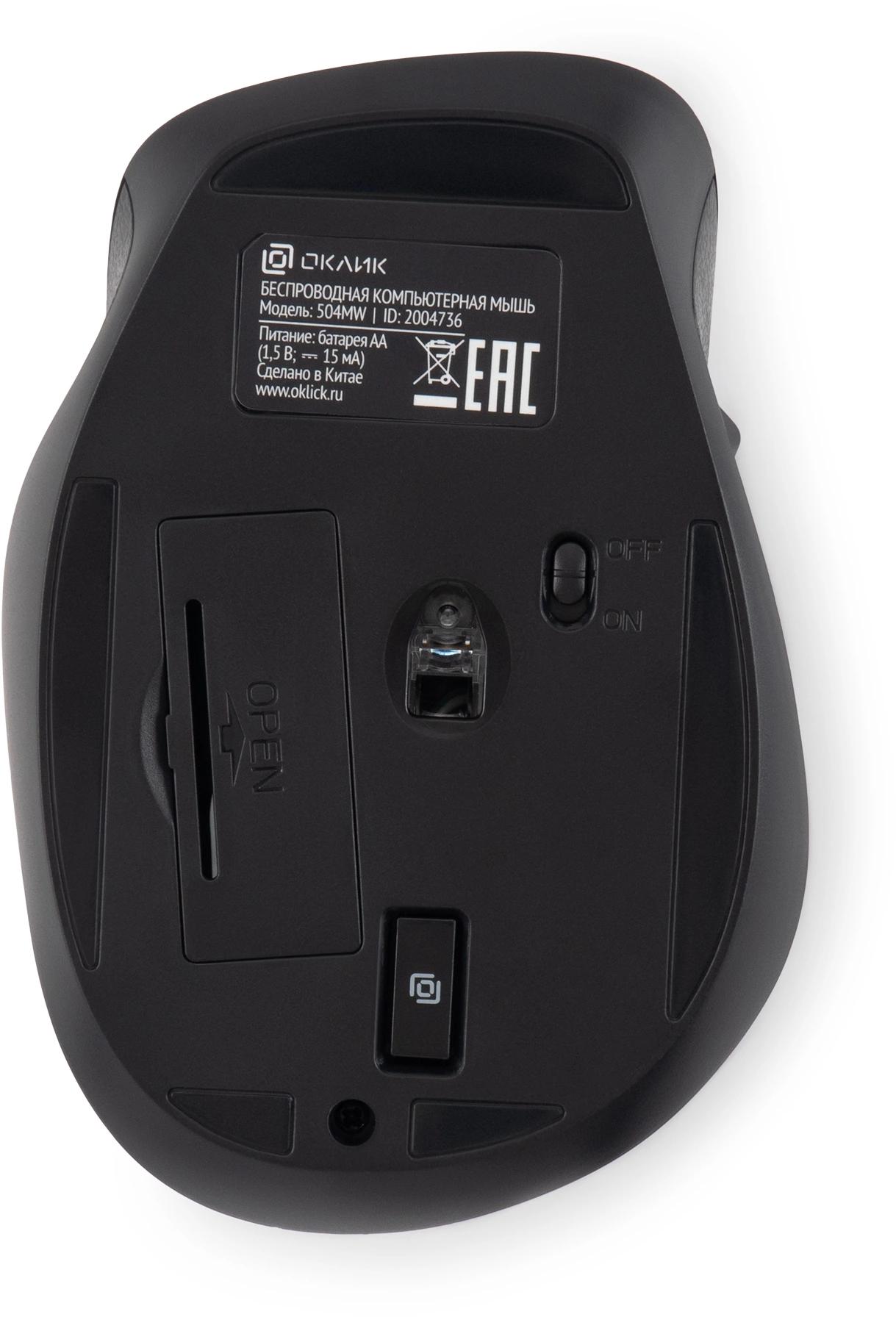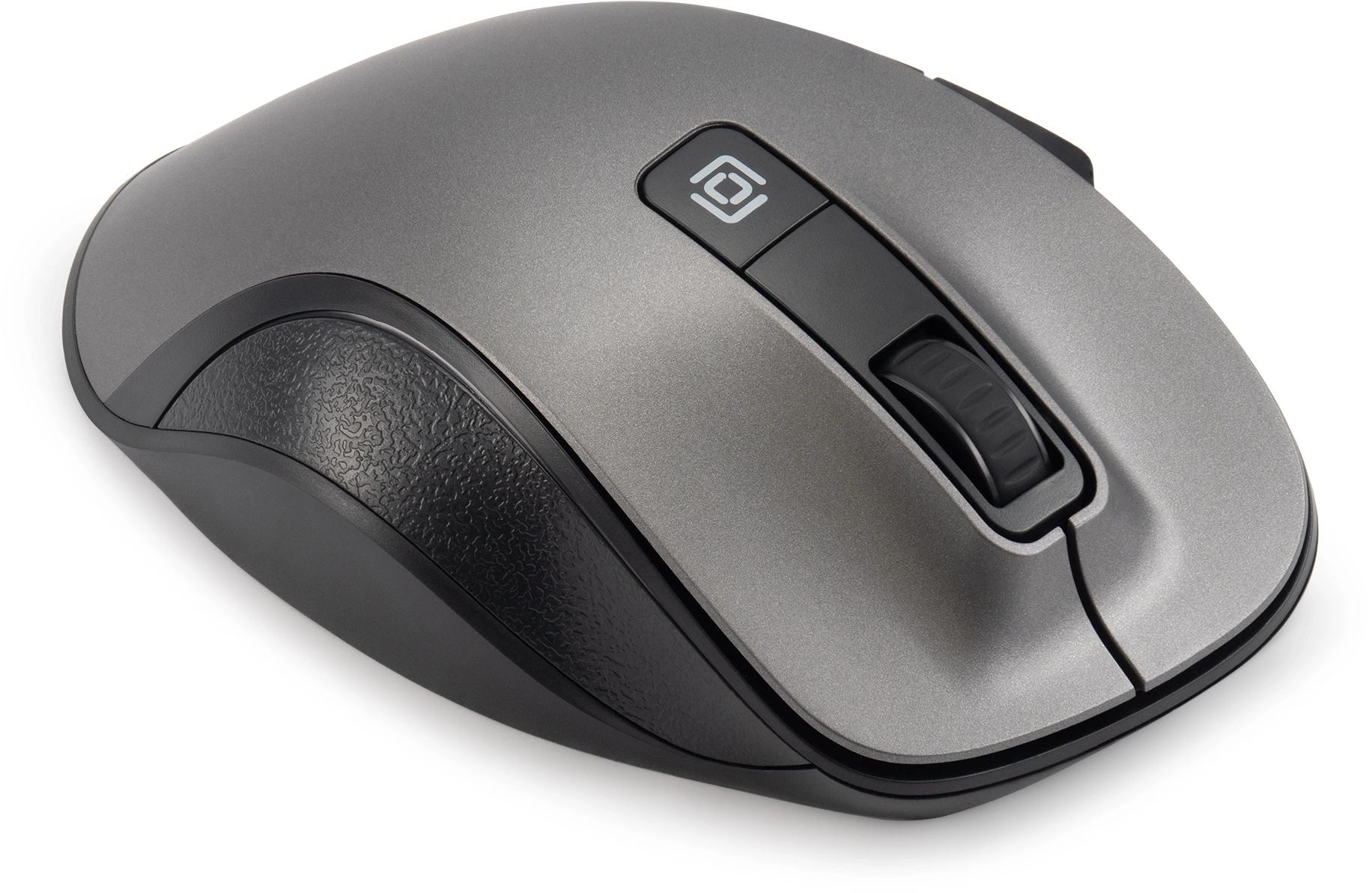 Функциональная офисная мышь с бесшумным кликом, прорезиненным колесиком прокрутки и беспроводным подключением