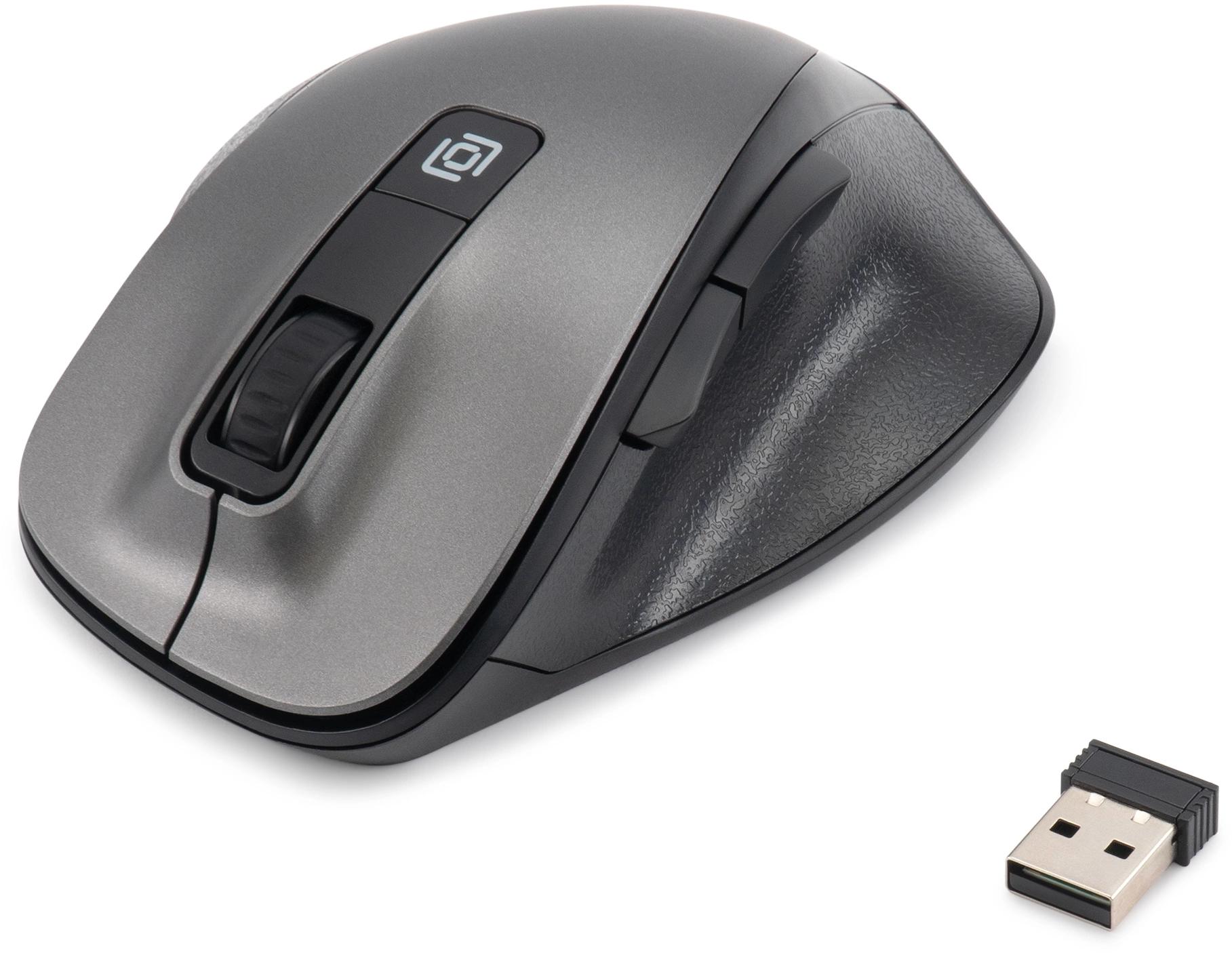 Функциональная офисная мышь с бесшумным кликом, прорезиненным колесиком прокрутки и беспроводным подключением