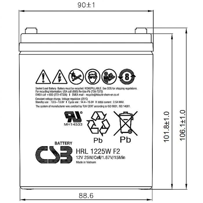 Аккумулятор CSB HRL 1225W F2 FR с высокой энергоемкостью. Особенная кристаллическая решетка электродов позволила увеличить на 20% отдаваемую мощность по сравнению с батареями других серий. Она разработана для эксплуатации в режиме высоких токов разряда при коротком времени разряда.