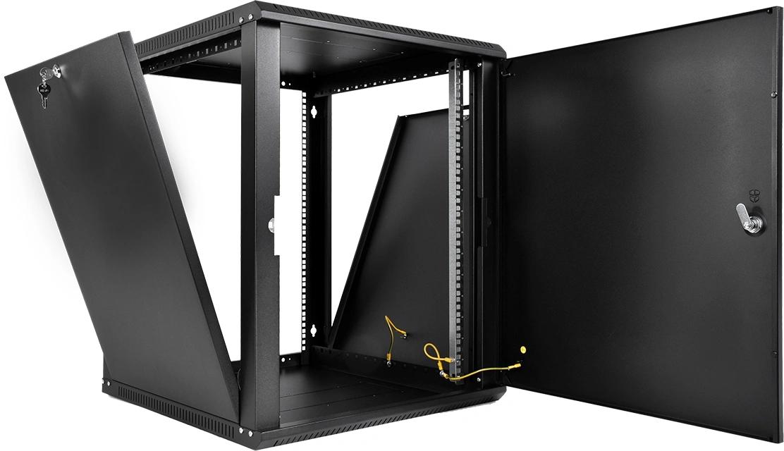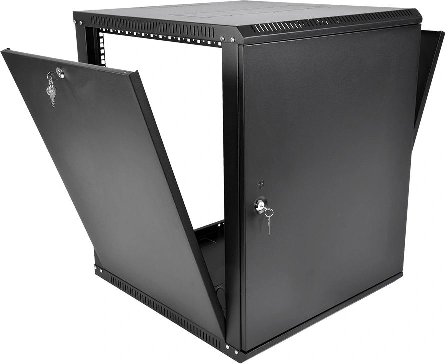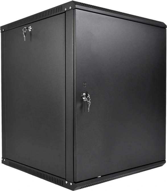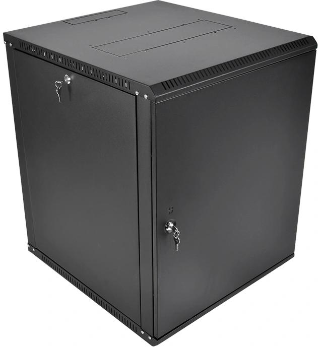 Шкаф коммутационный ЦМО ШРН-Эконом (ШРН-Э-12.350.1-9005) настенный 12U 600x350мм пер.дв.металл направл.под закл.гайки 85кг черный 300мм 15.39кг 180град. 608мм IP20 сталь