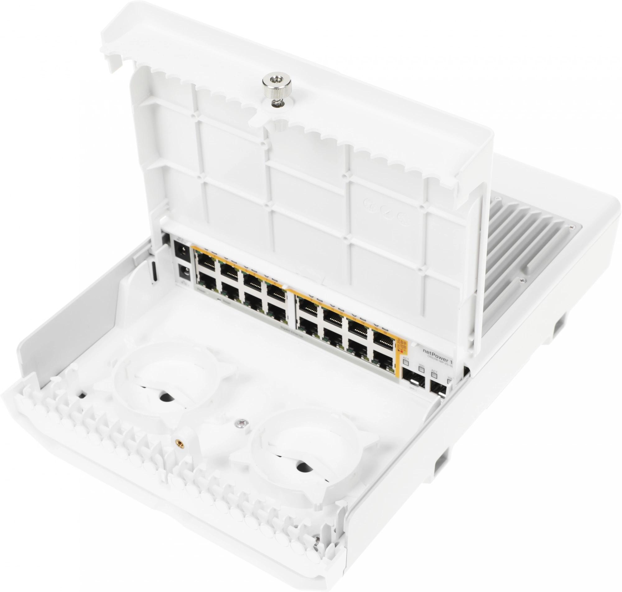 блок питания НЕ ВХОДИТ в комплект поставки. Можно выбрать предпочтительный вариант питания, например, комплект АКБ и т. д. netPower 16P cовместим также с блоками питания Mikrotik: 24HPOW, 48POW и 48V2A96W.