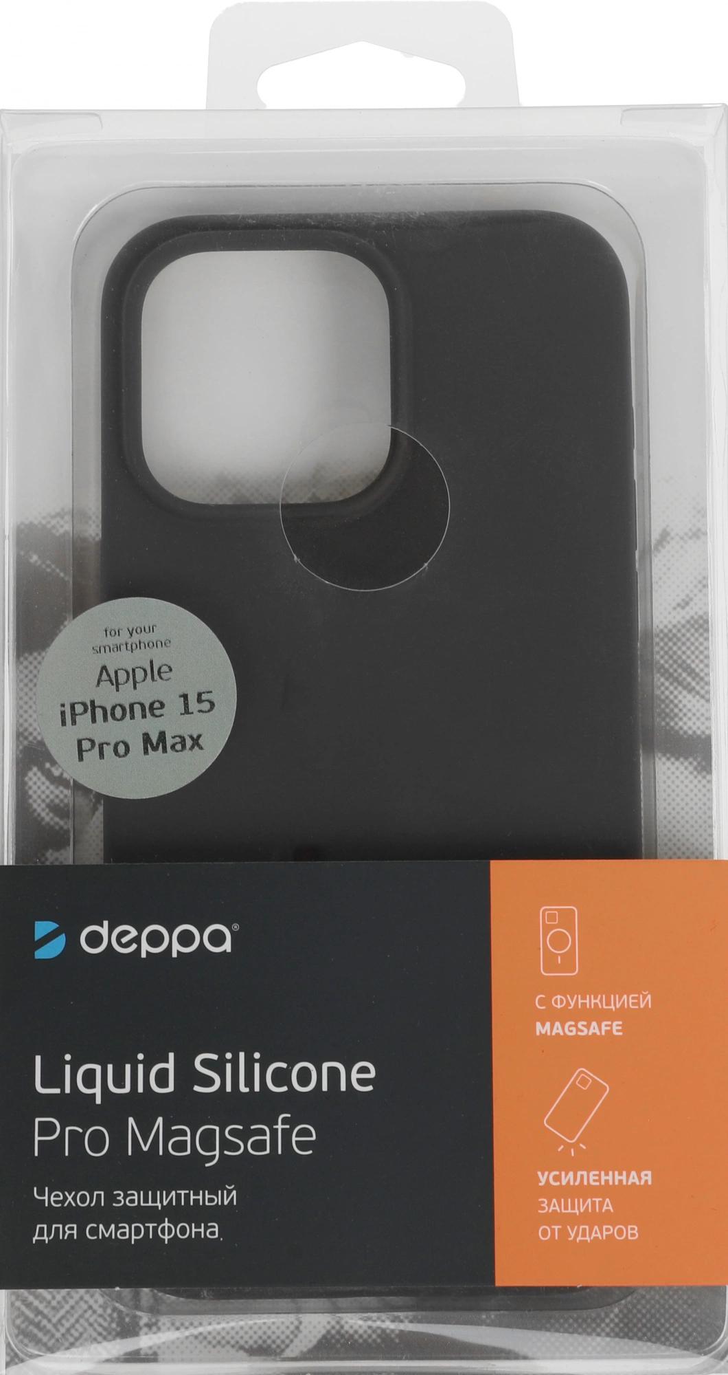 Чехол (клип-кейс) Deppa для Apple iPhone 15 Pro Max Liquid Silicone with MagSafe серый