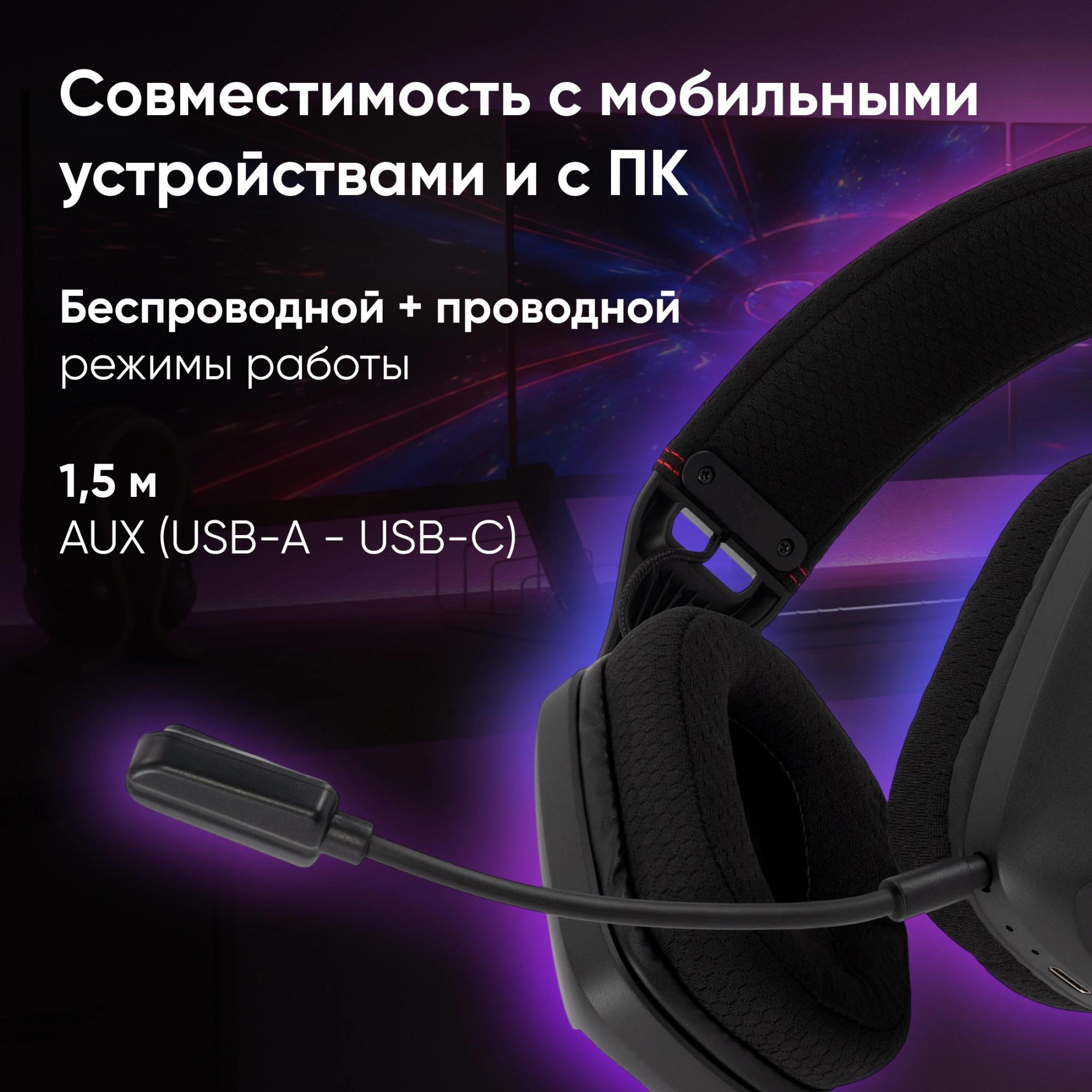 Облегченная гарнитура с поддержкой беспроводных (BT + 2, 4G) и проводного режима, съемным микрофоном, ресивер, зарядный провод в комплекте
