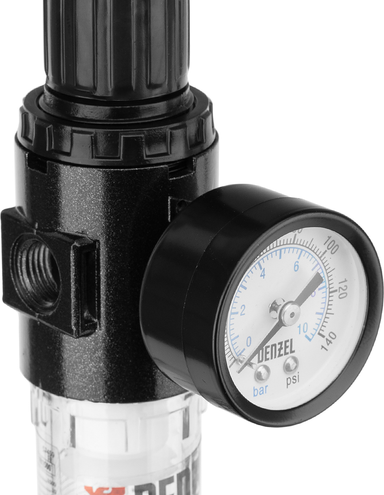 Предназначен для подготовки сжатого воздуха, поступающего от компрессора: осушения и очищения от пыли и других твердых частиц размером от 40 мкм. Также позволяет устанавливать и поддерживать давление, необходимое для эффективной работы пневмоинструмента.