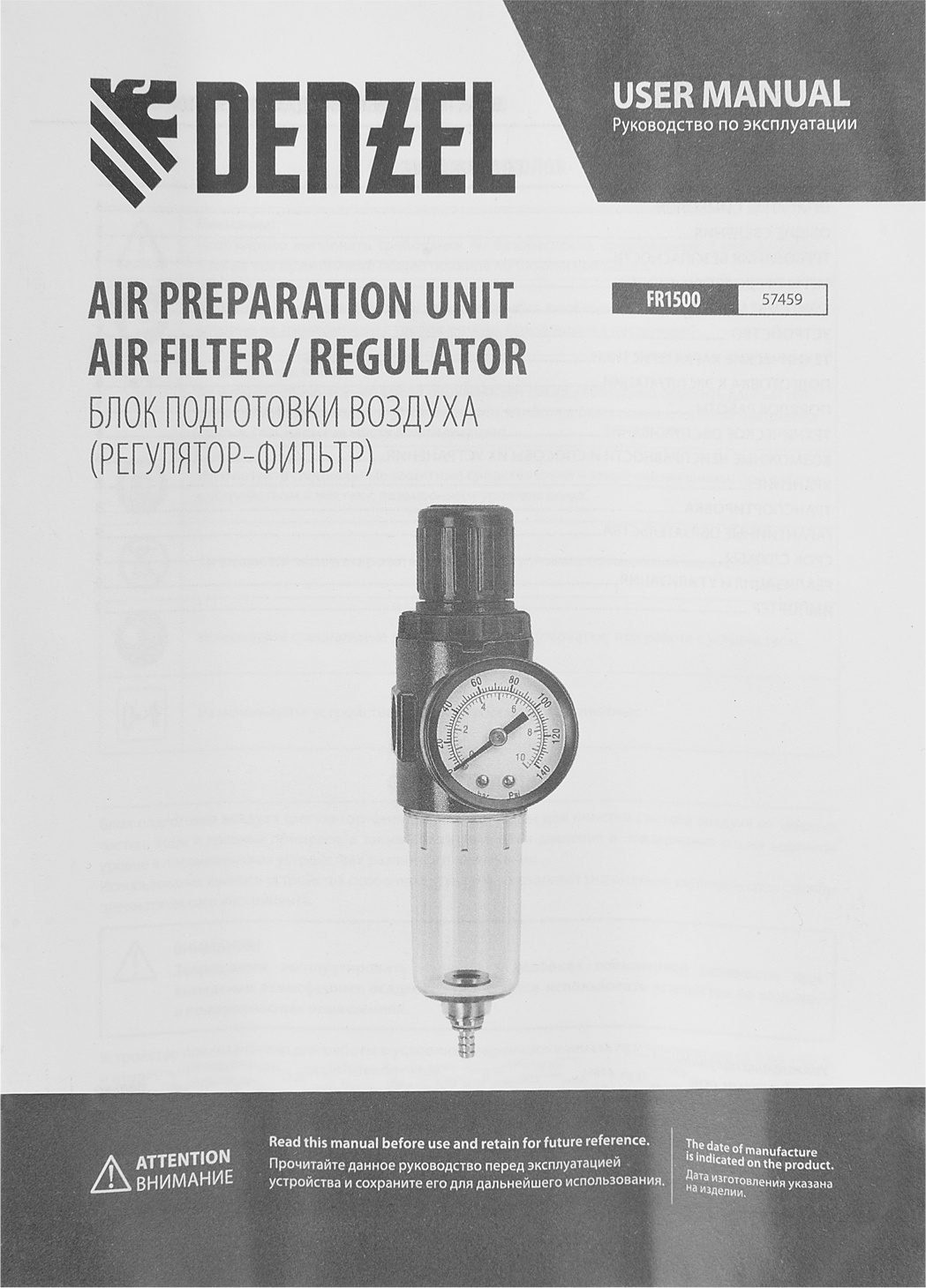 Фильтр-влагоотделитель c редуктором, манометр, руководство по эксплуатации с гарантийным талоном.