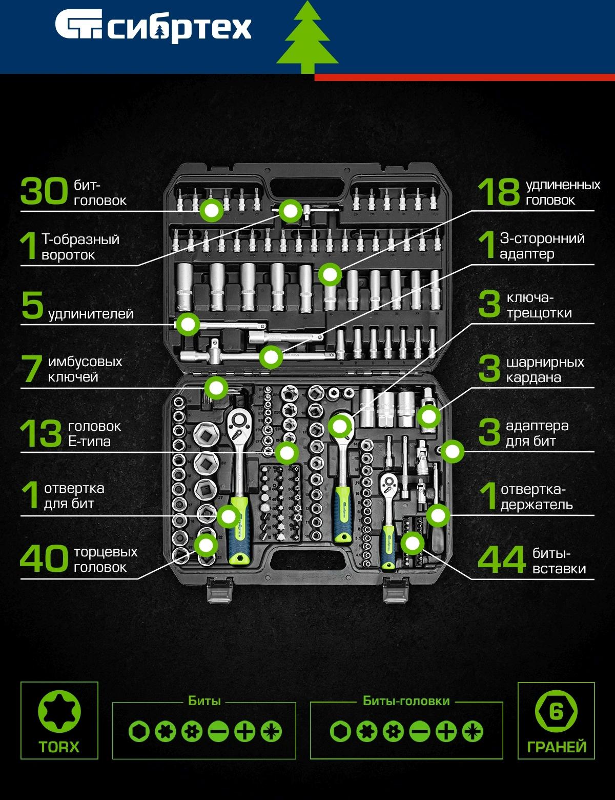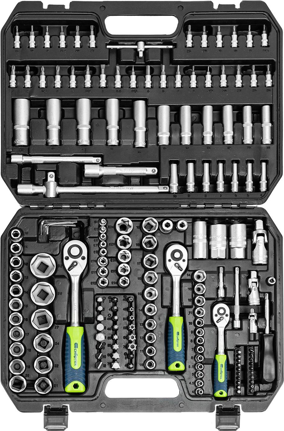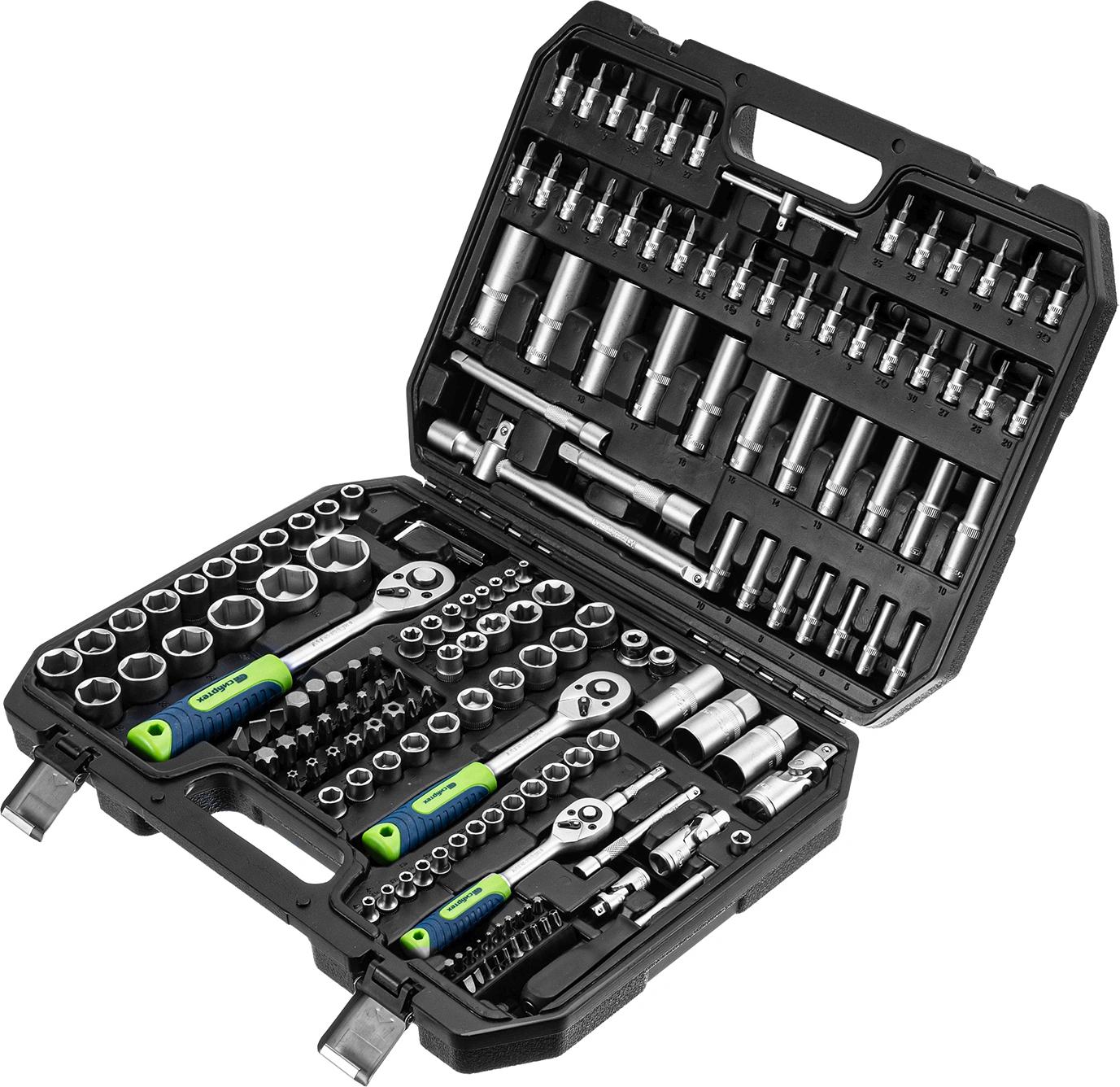 Предназначенных для монтажа и демонтажа резьбового крепежа с разными типами шлицев. В комплект поставки входят карданы, удлинители и переходники, облегчающие работу в труднодоступных местах. Набор используется для ремонта автомобилей, а также будет полезен в быту.