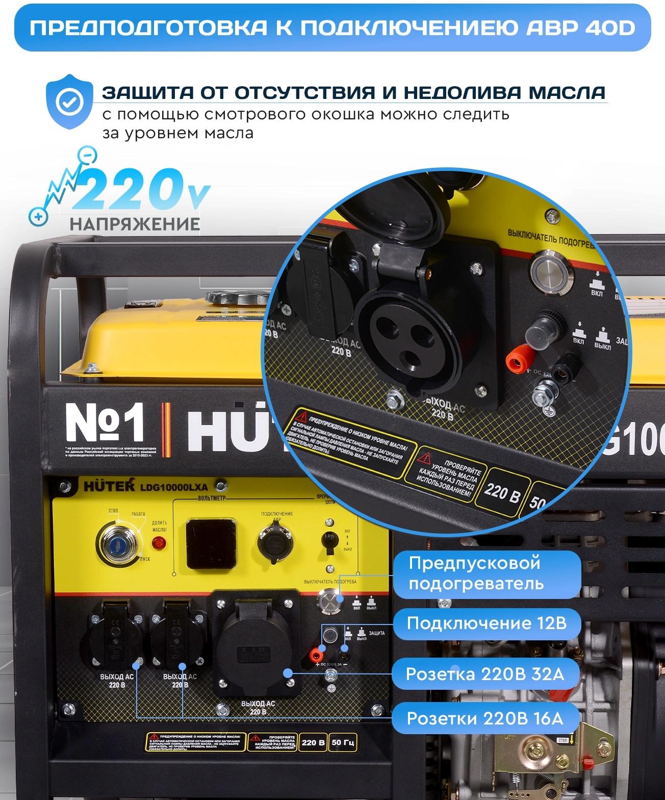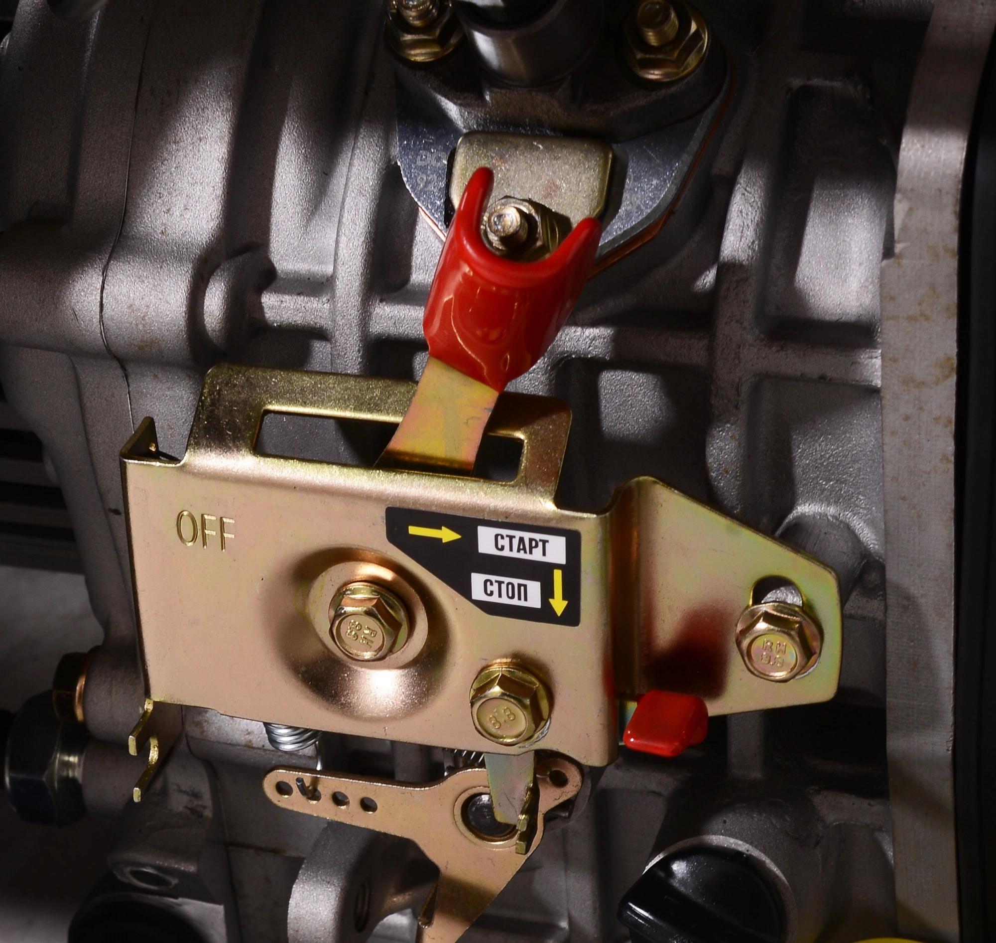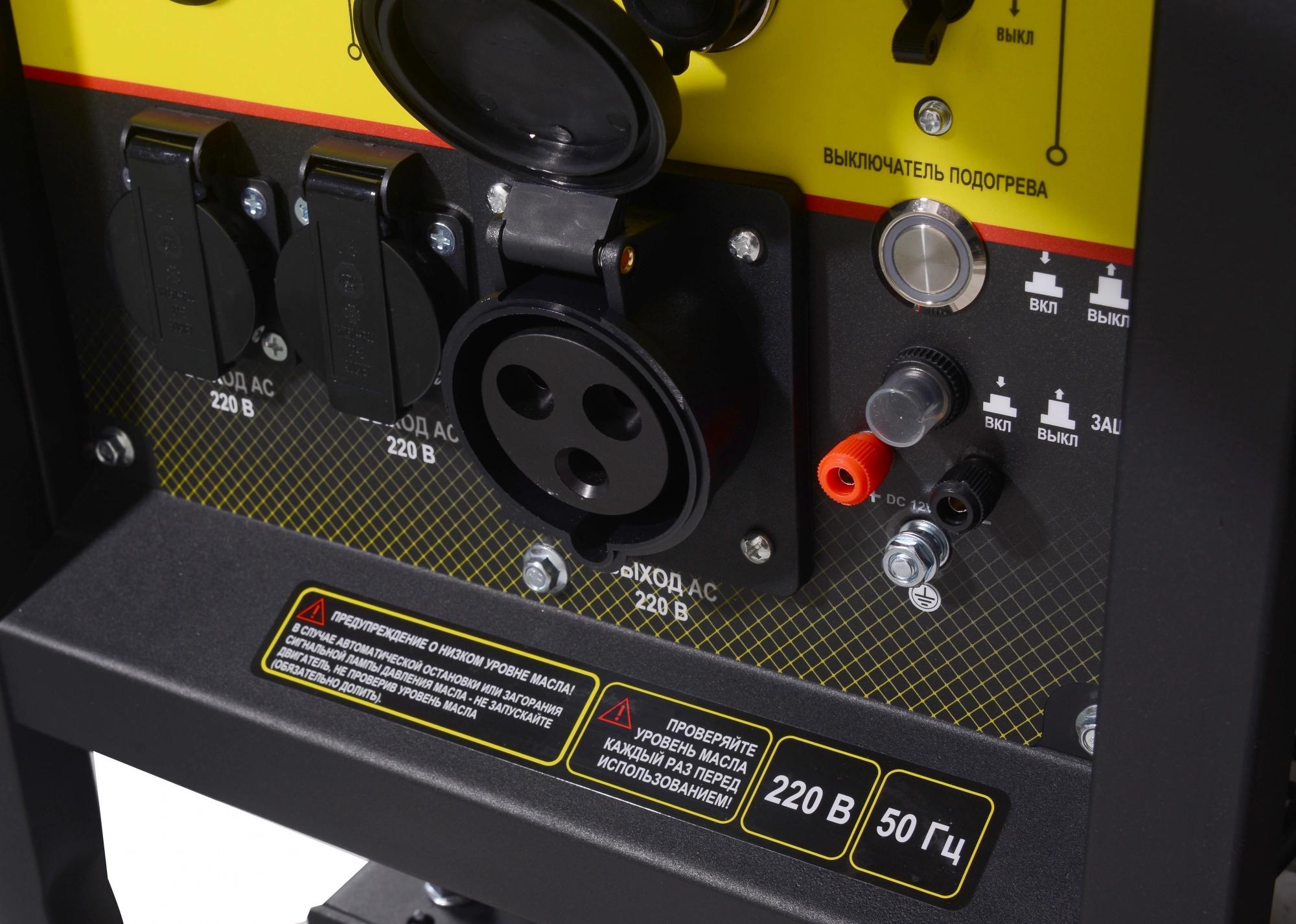 Щёточный генератор. Двигатель одноцилиндровый с воздушным охлаждением. Есть предподготовка для подключения АВР.