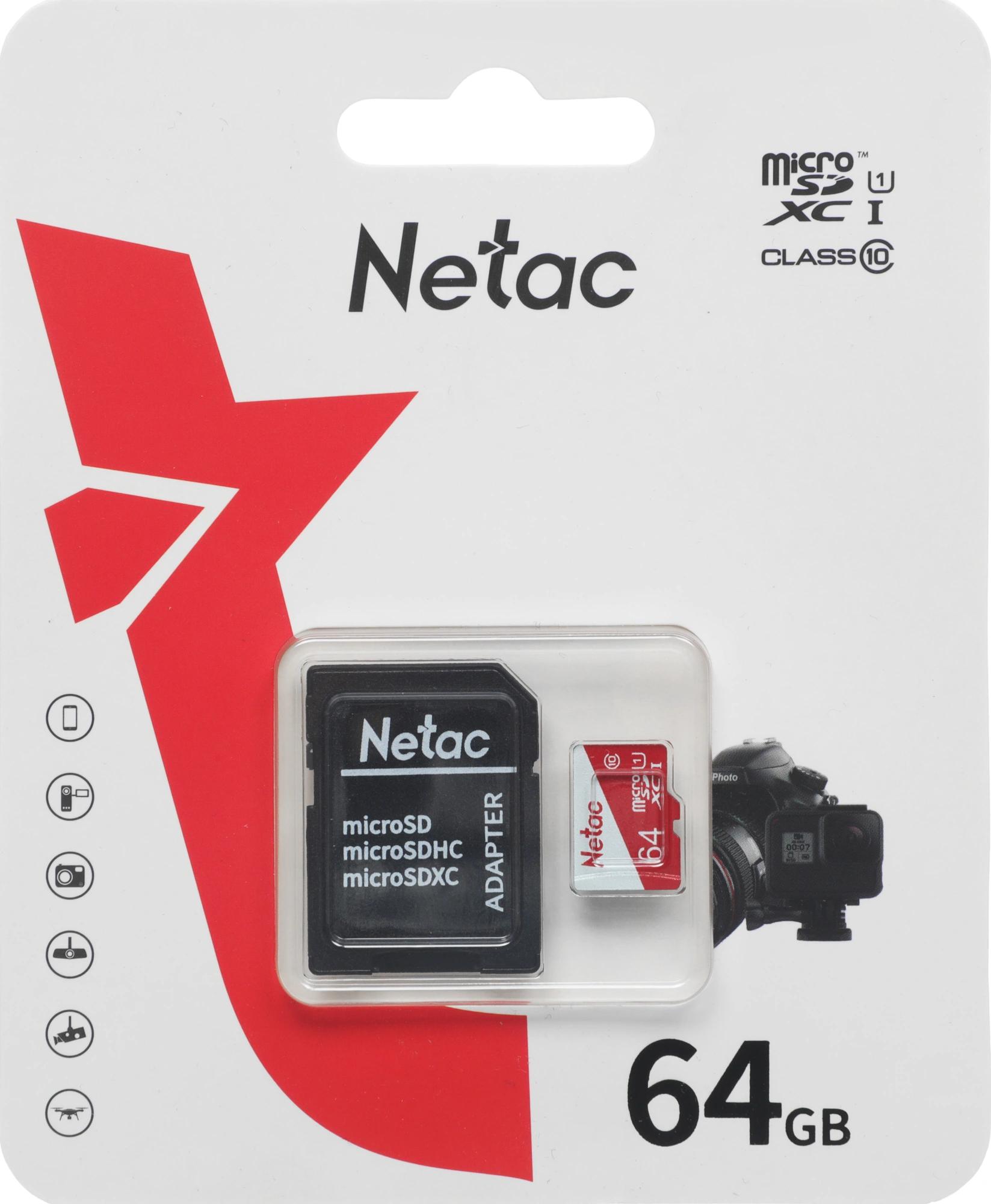 Флеш карта microSDXC 64GB Netac NT02P500ECO-064G-R P500 Eco + adapter