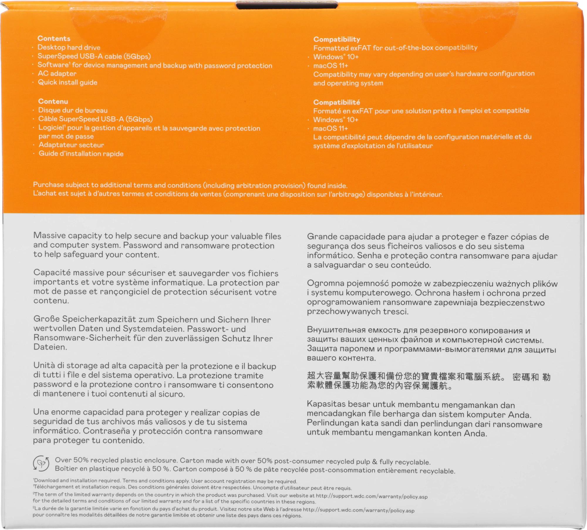 Настольный жесткий диск My Book, Кабель SuperSpeed USB-A (5 Гбит/с), ПО для управления устройствами и резервного копирования, Сетевой блок питания, Краткое руководство по установке