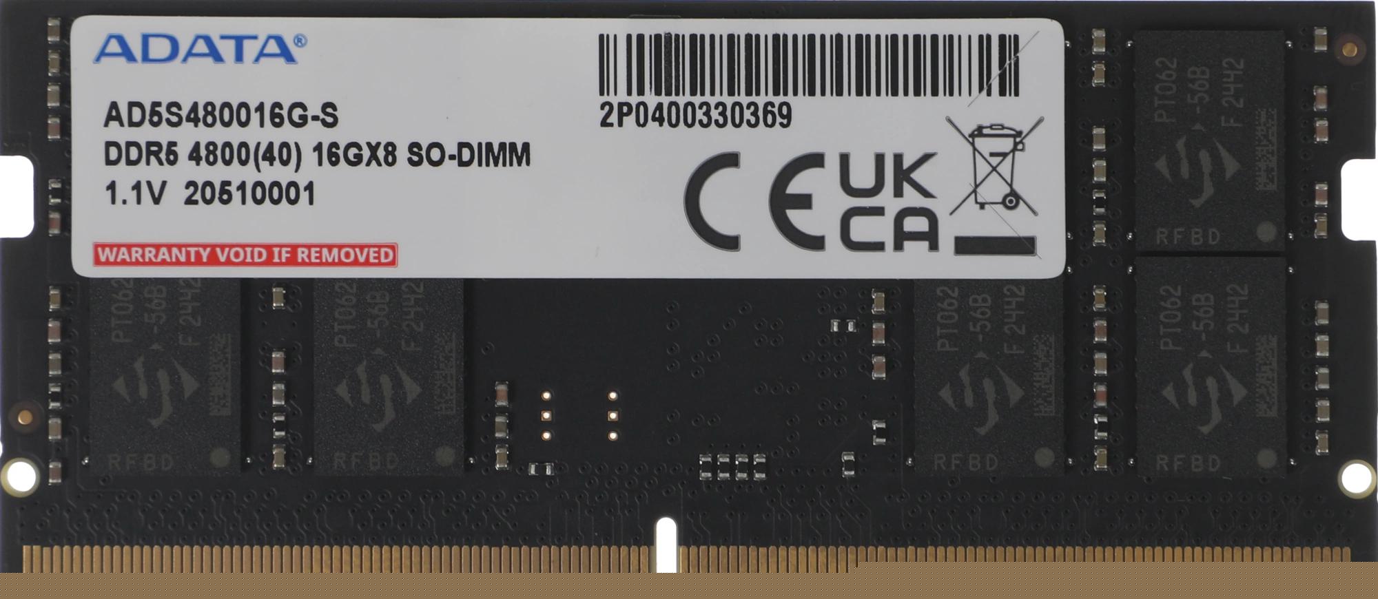 Память DDR5 16GB 4800MHz A-Data AD5S480016G-S RTL PC4-38400 CL40 SO-DIMM 262-pin 1.1В Intel single rank Ret