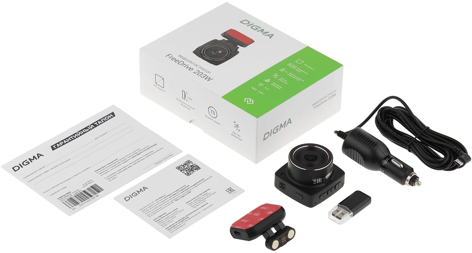 Видеорегистратор Digma FreeDrive 203W черный 2Mpix 1080x1920 1080p 120гр. MSTAR 8336