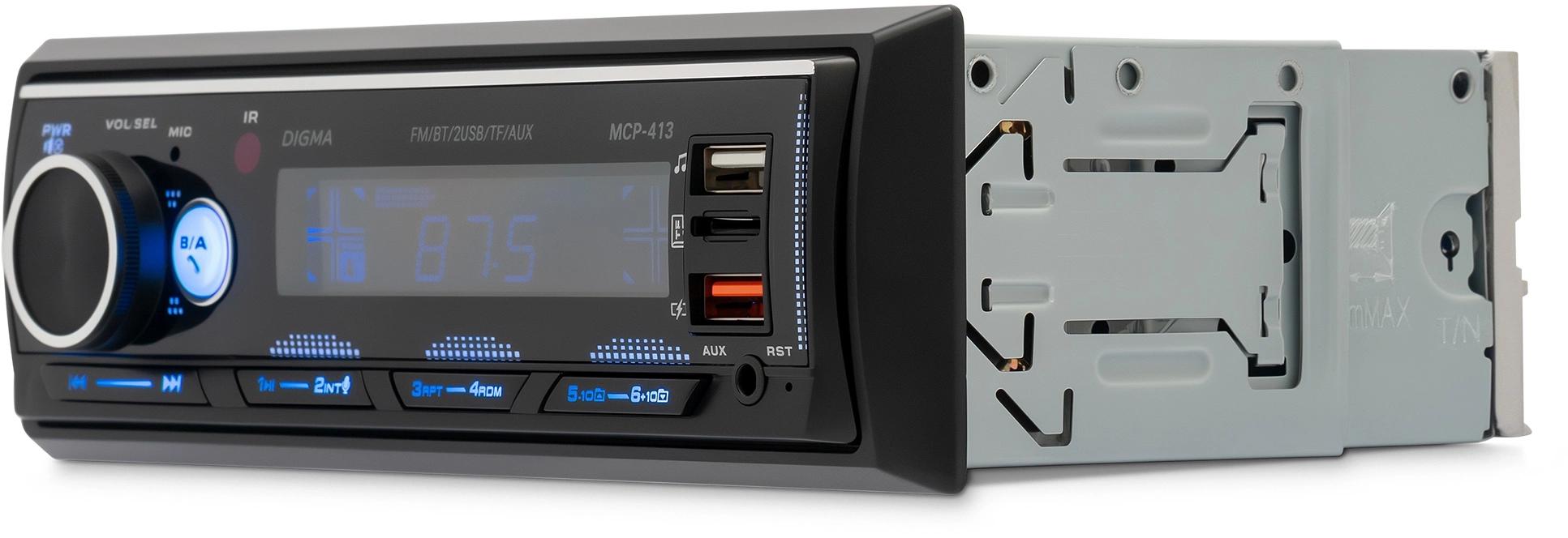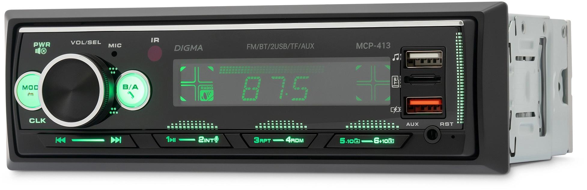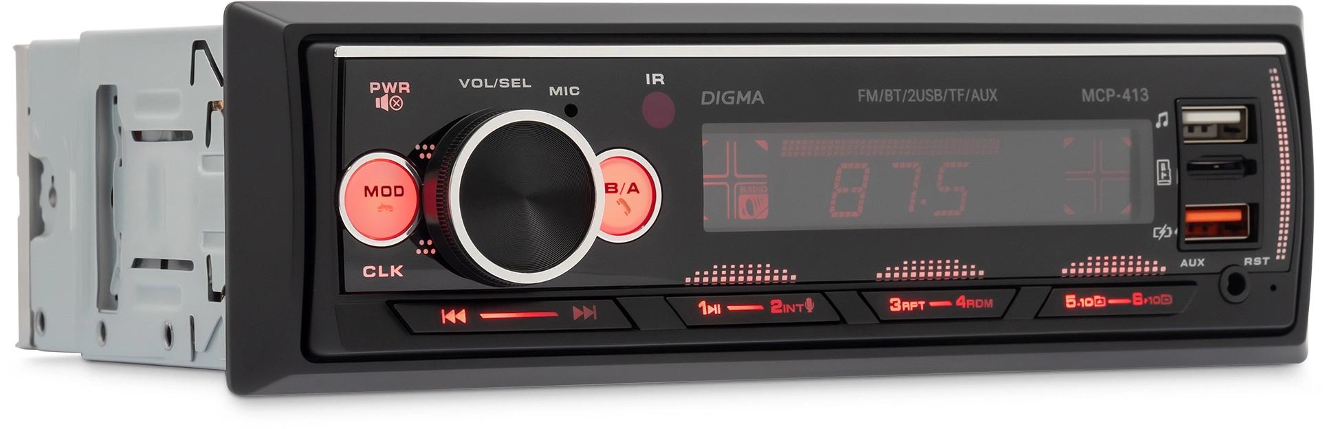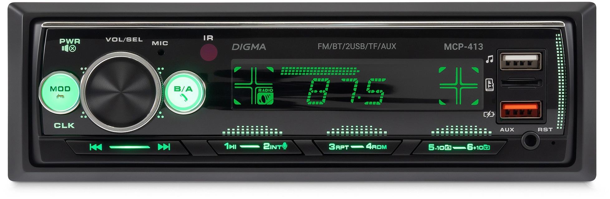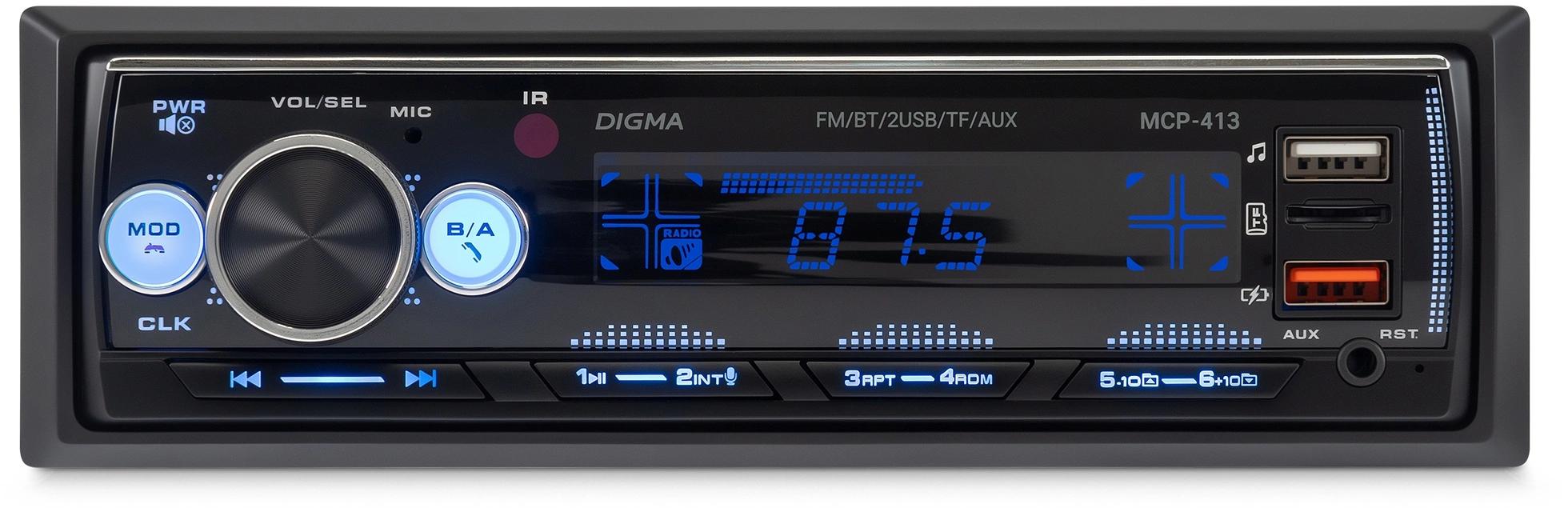 Автомагнитола Digma MCP-413 1DIN 4x45Вт v5.0 USB 2.0 AUX 4 ПДУ