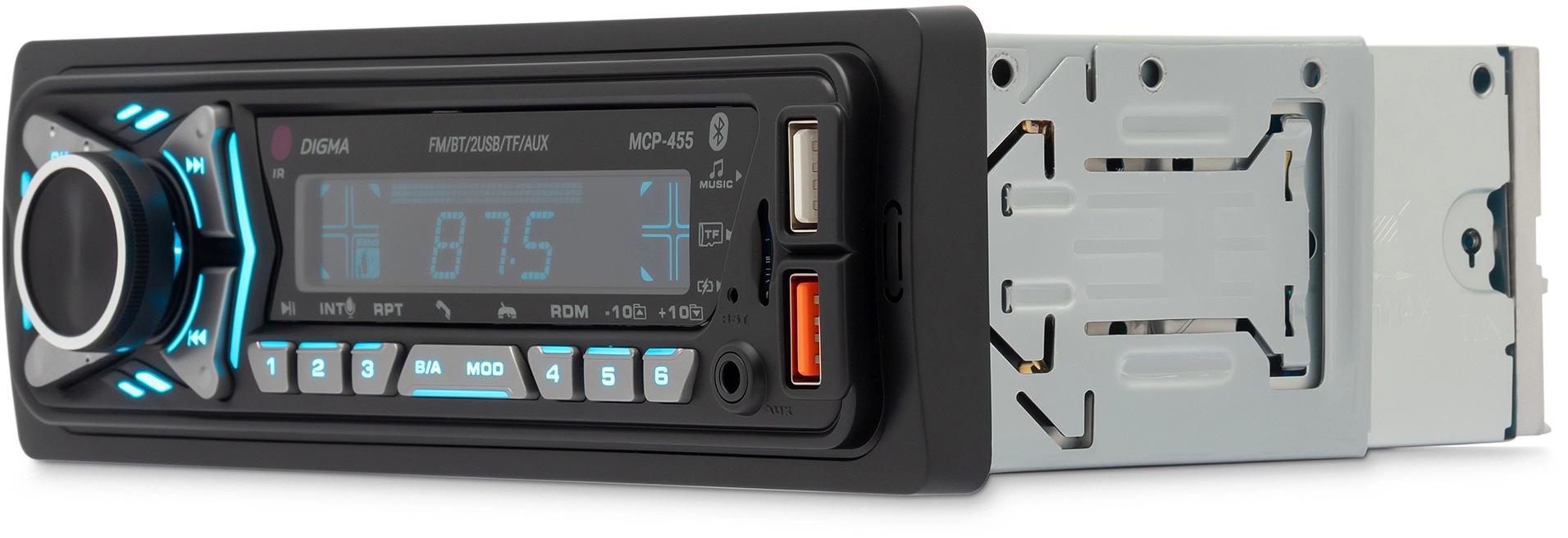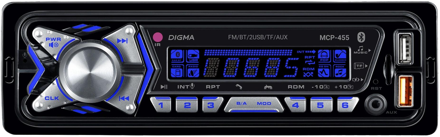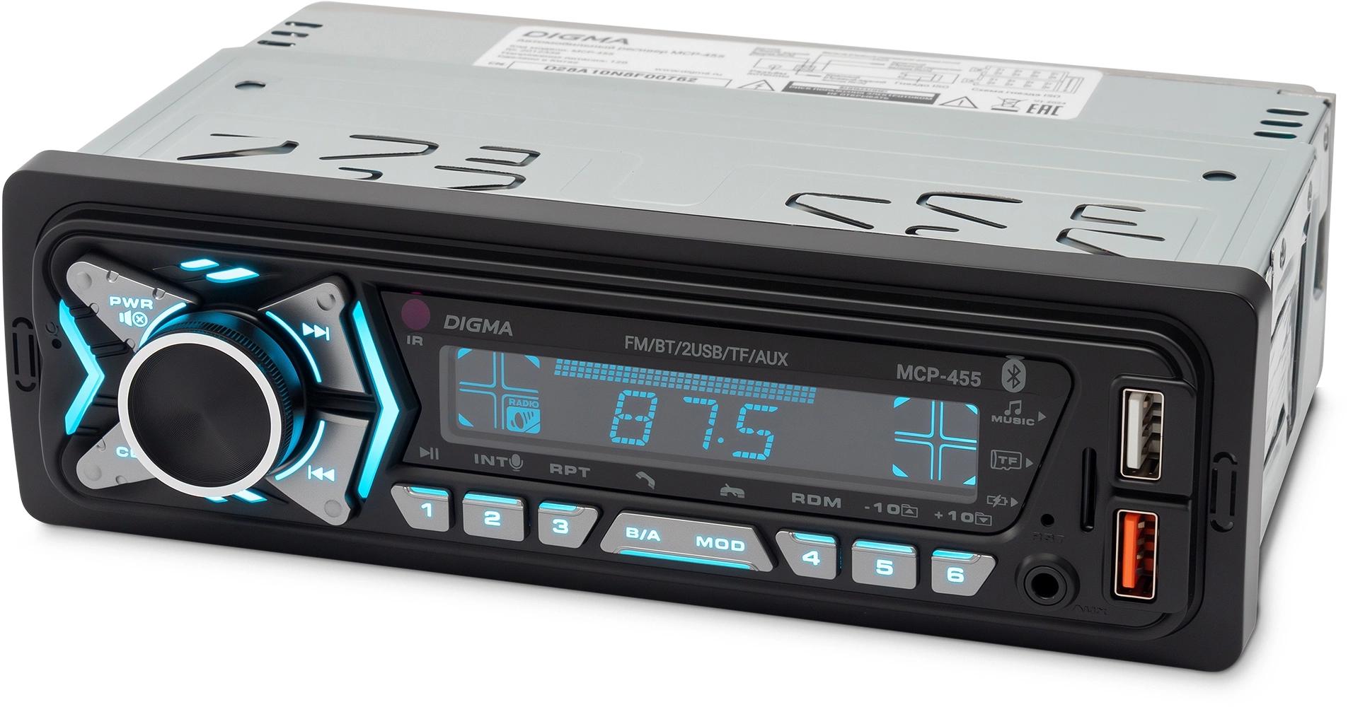 Автомагнитола Digma MCP-455 1DIN 4x50Вт v5.0 USB 2.0 AUX 4 ПДУ