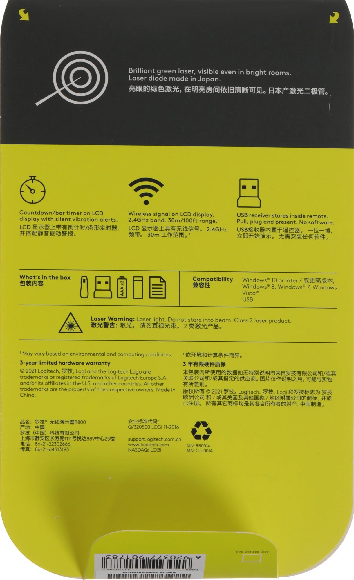 Презентер Logitech R800 USB (30м) черный