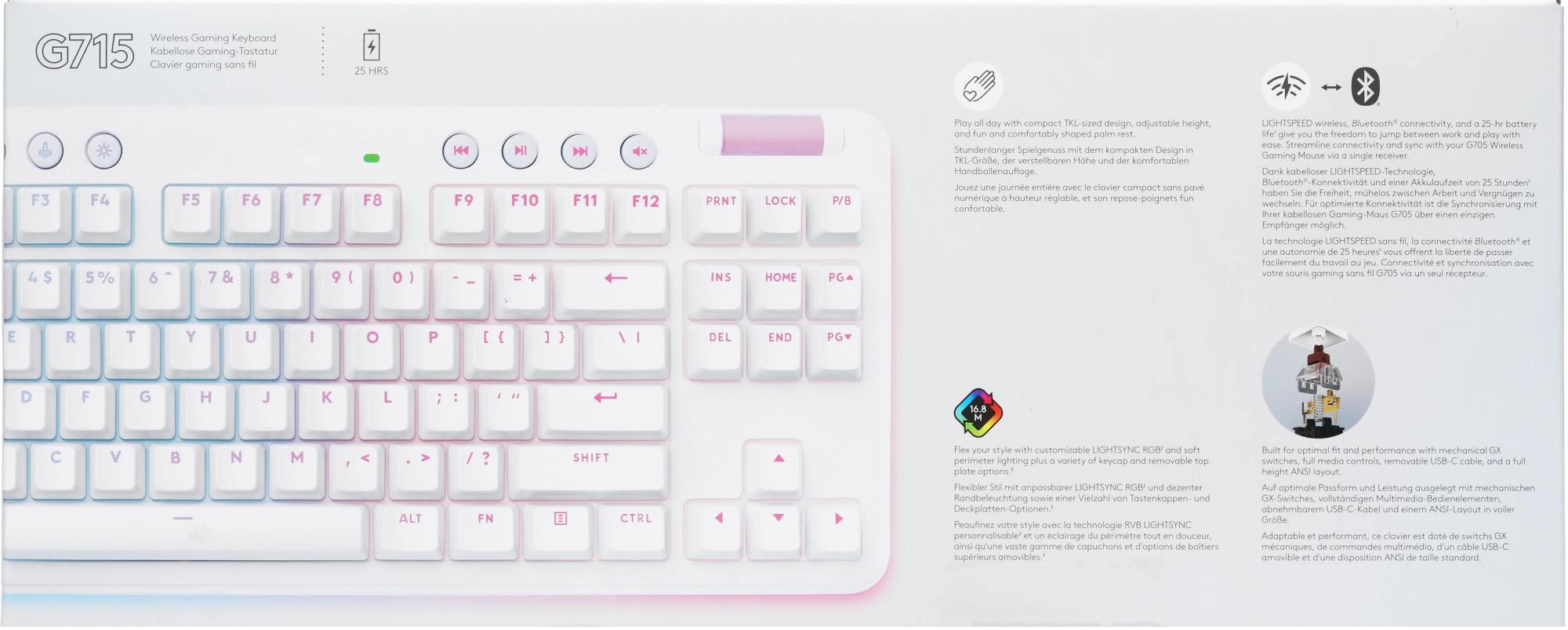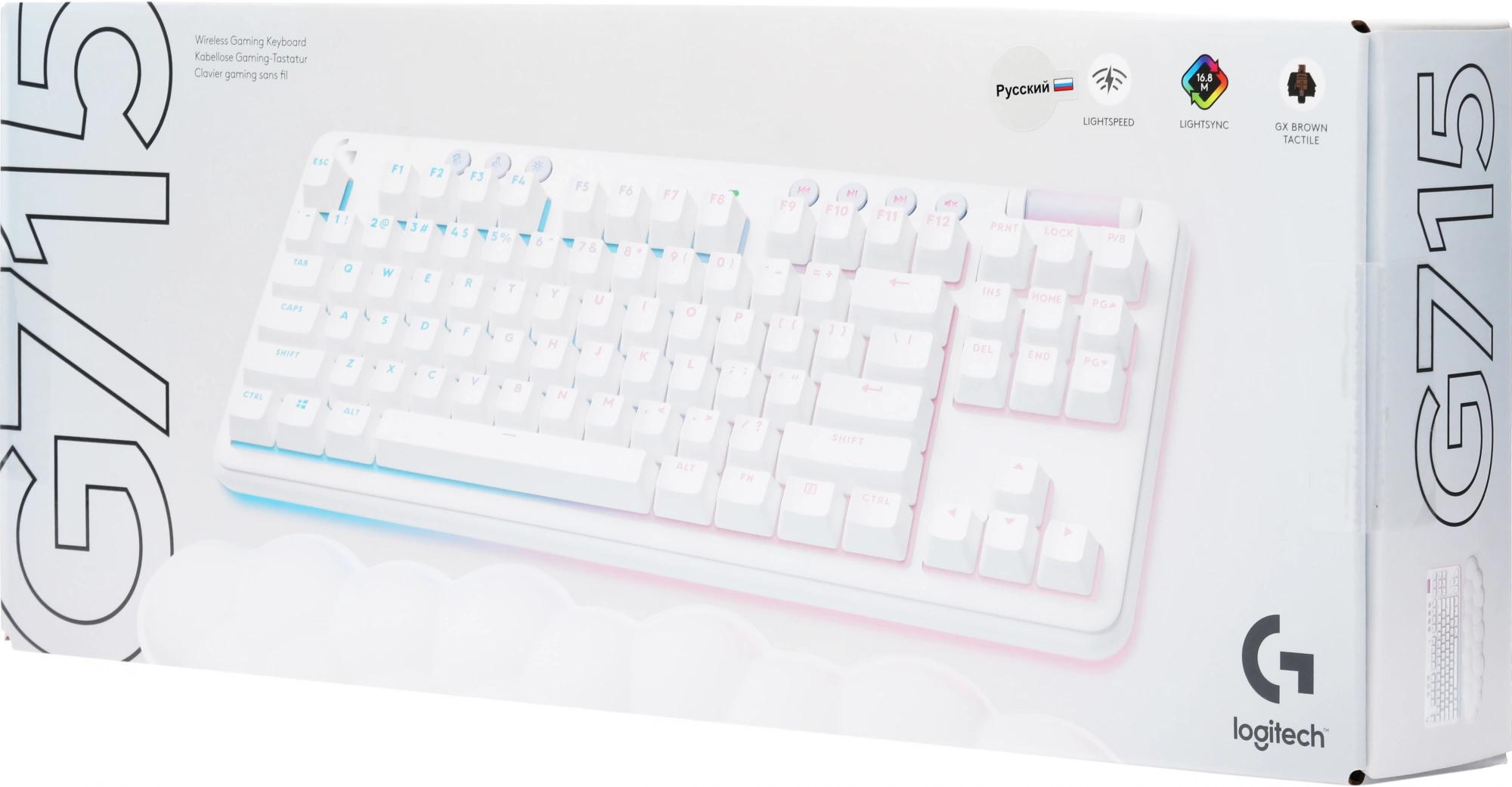 Клавиатура Logitech G715 TKL механическая белый USB беспроводная BT/Radio Multimedia for gamer LED (подставка для запястий) (920-010464)