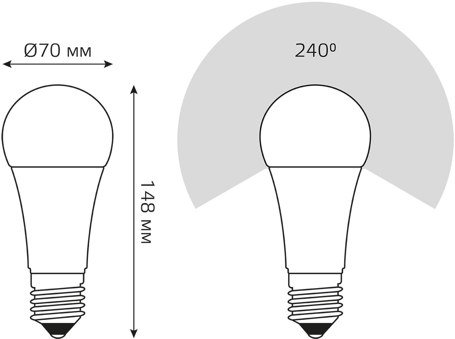 Лампа светодиодная Gauss A70 22Вт цок.:E27 груша 220B св.свеч.бел.теп. (упак.:10шт) (102502122)