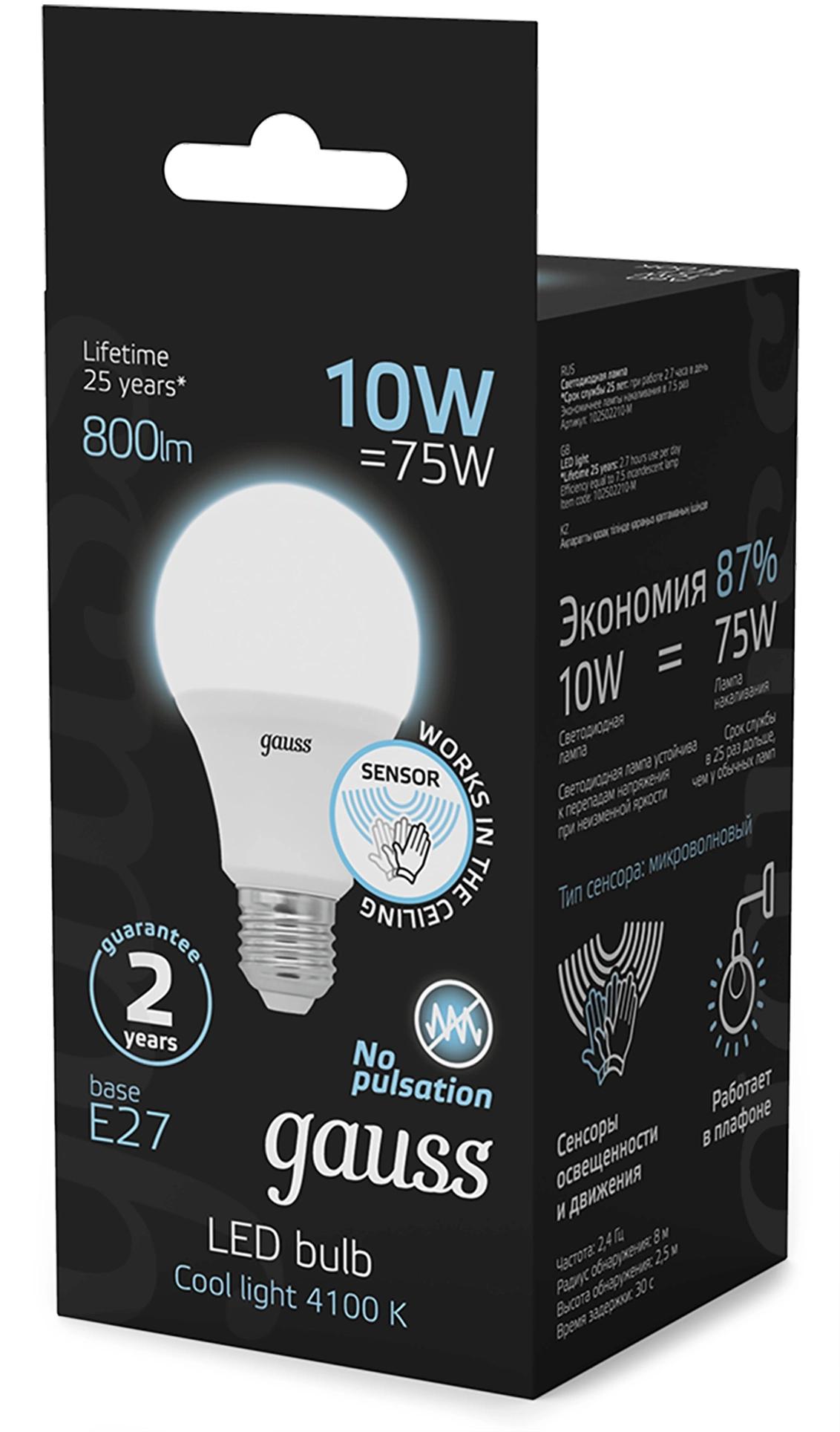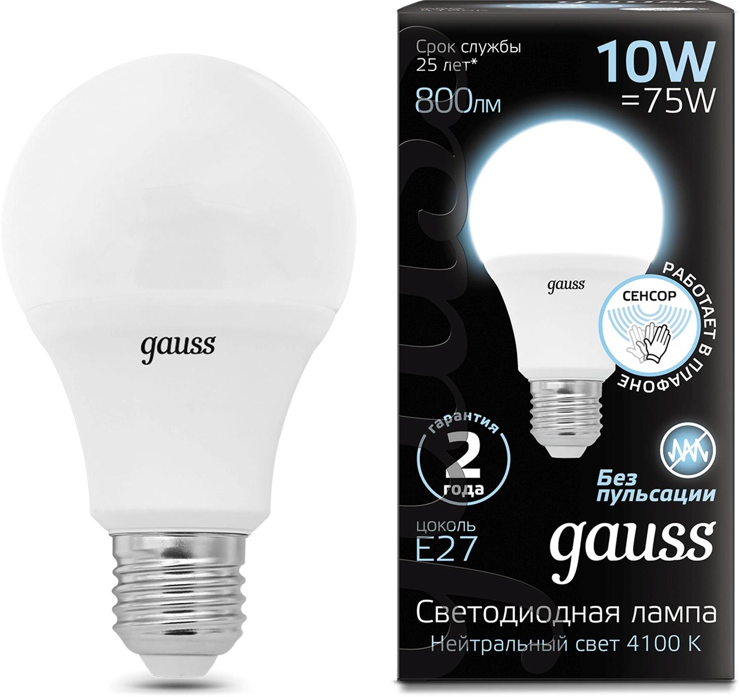 Лампа светодиодная Gauss 102502210-M 10Вт цок.:E27 груша 220B св.свеч.бел.нейт. A60 (упак.:10шт)